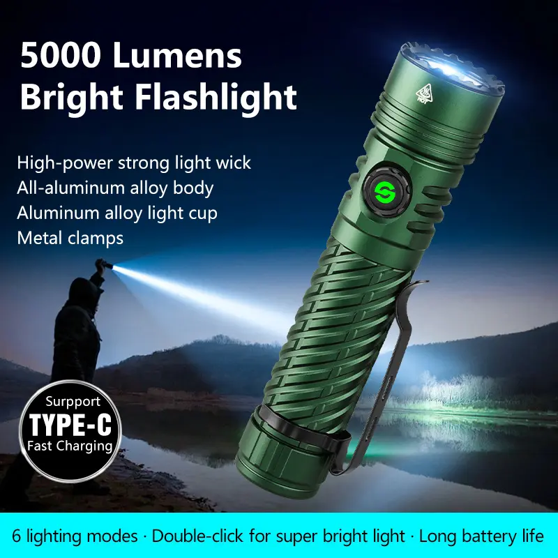 Super Bright Portable Rechargeable Flashlight Strong Light Ultra Bright Outdoor Camping Home Long-range Flashlight Six Modes Long Endurance Lighting