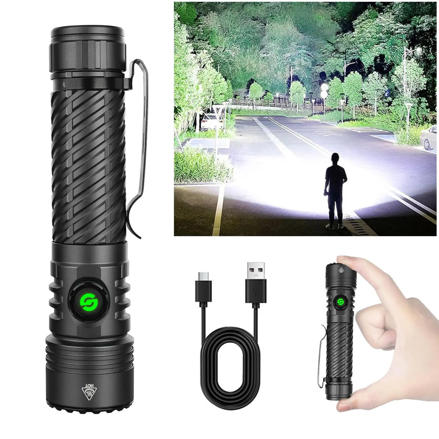 10000 Lumens 4000mAh LED Flashlight Super Bright, Ultra Bright Portable Camping Flashlight,Waterproof Flash Light for Camping,Night Outdoor Emergency Lighting