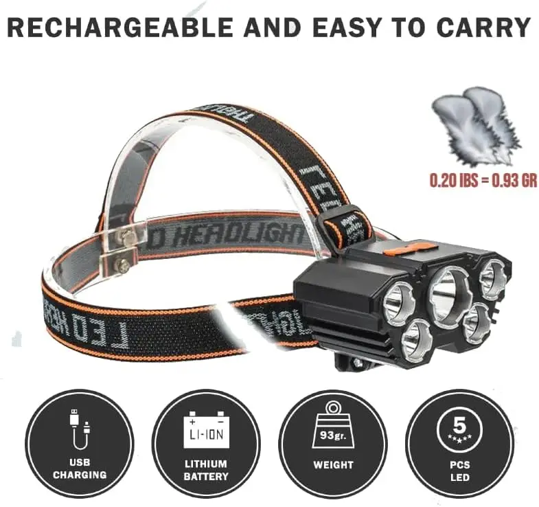 Super Bright Rechargeable LED Headlights - 2 Pack