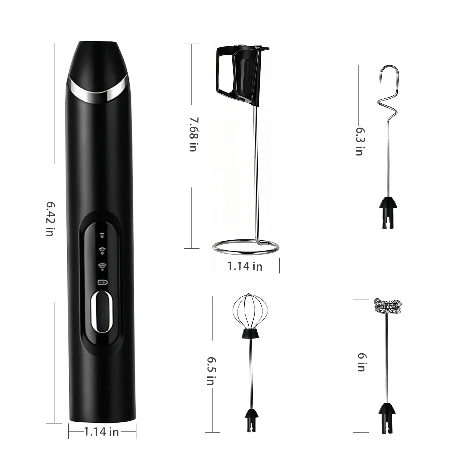 Love this milk frother, comes with 3 attachments, easy to use, easy to clean. No batteries needed, comes with a usb charger.
