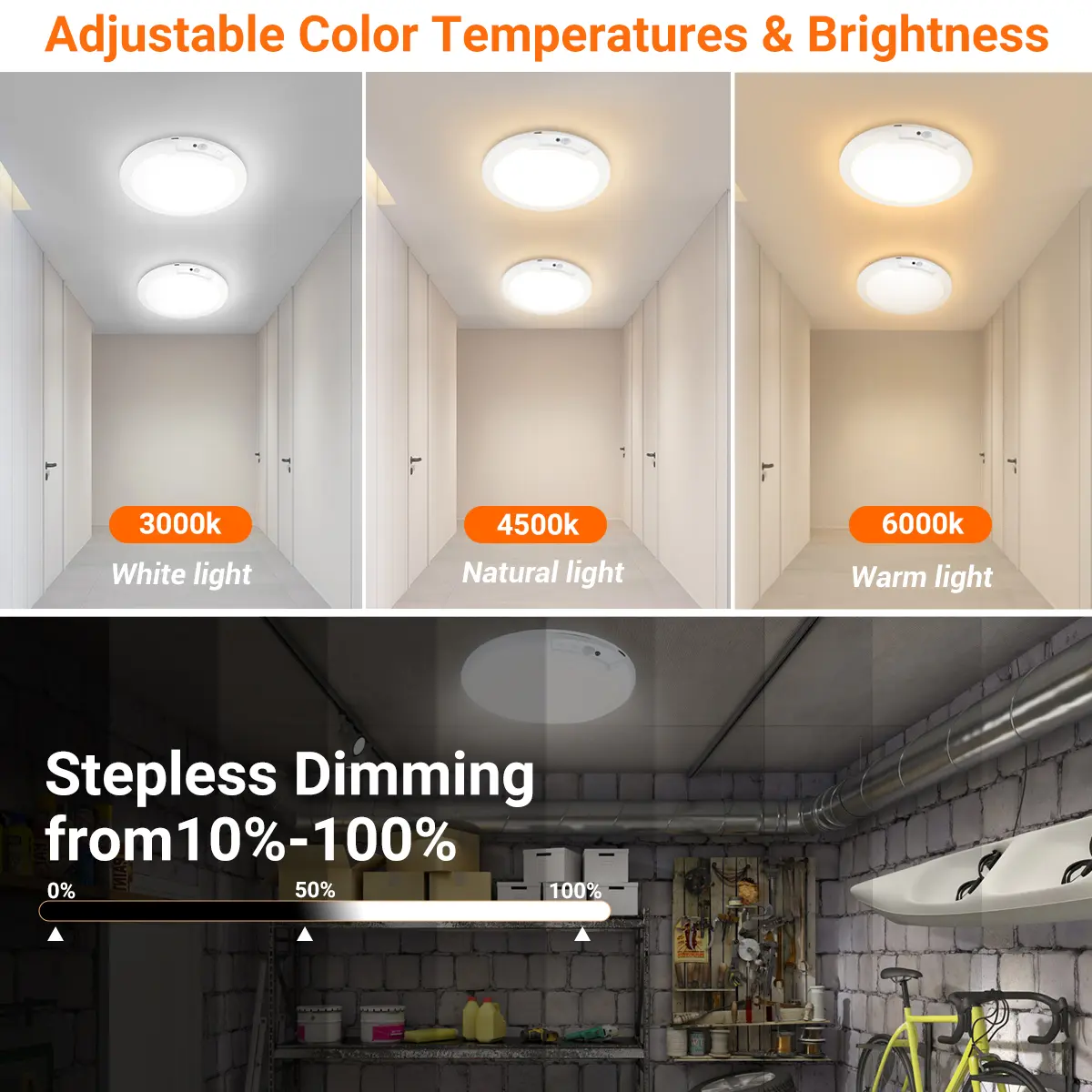 This indoor induction lighting fixture has three color temperatures to choose from: 3000K warm white, 4500K natural light, and 6500K cool white, with a color temperature of 400 lumens adjustable. It fully meets various indoor lighting needs. Just use the buttons on the remote control or light to select your favorite color and brightness. In addition, the timer function allows the lights to automatically turn off after 15/30/60 minutes.