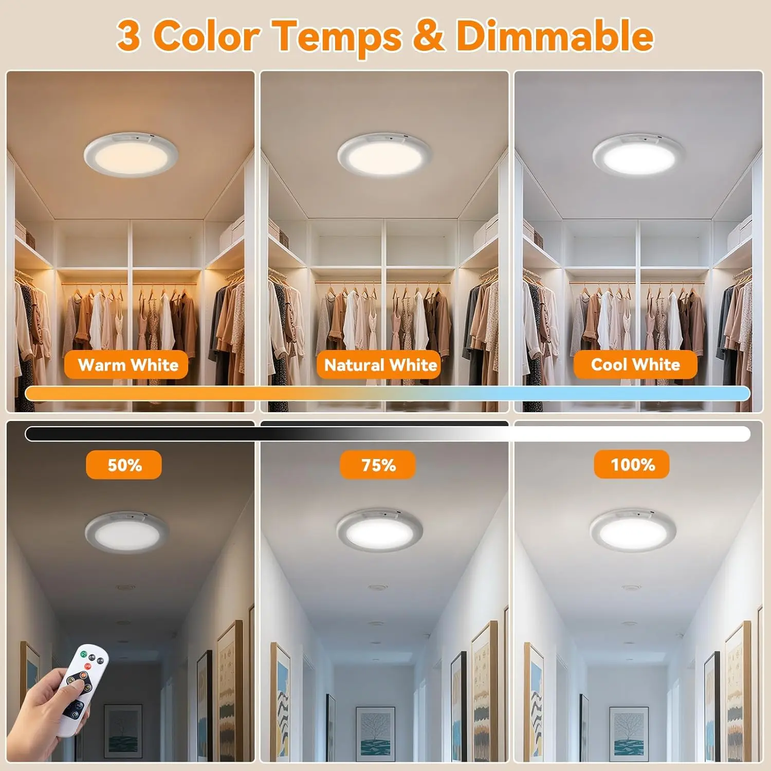 ·3 Color Temps & Dimmable: This LED ceiling light provides 3 color temperature options, including cool white, warm white, and natural white, and it also offers a smooth stepless brightness adjustment function ranging from 50% to 100%. With its versatile lighting modes, this flush mount ceiling light can be better suited to a wider range of environments.