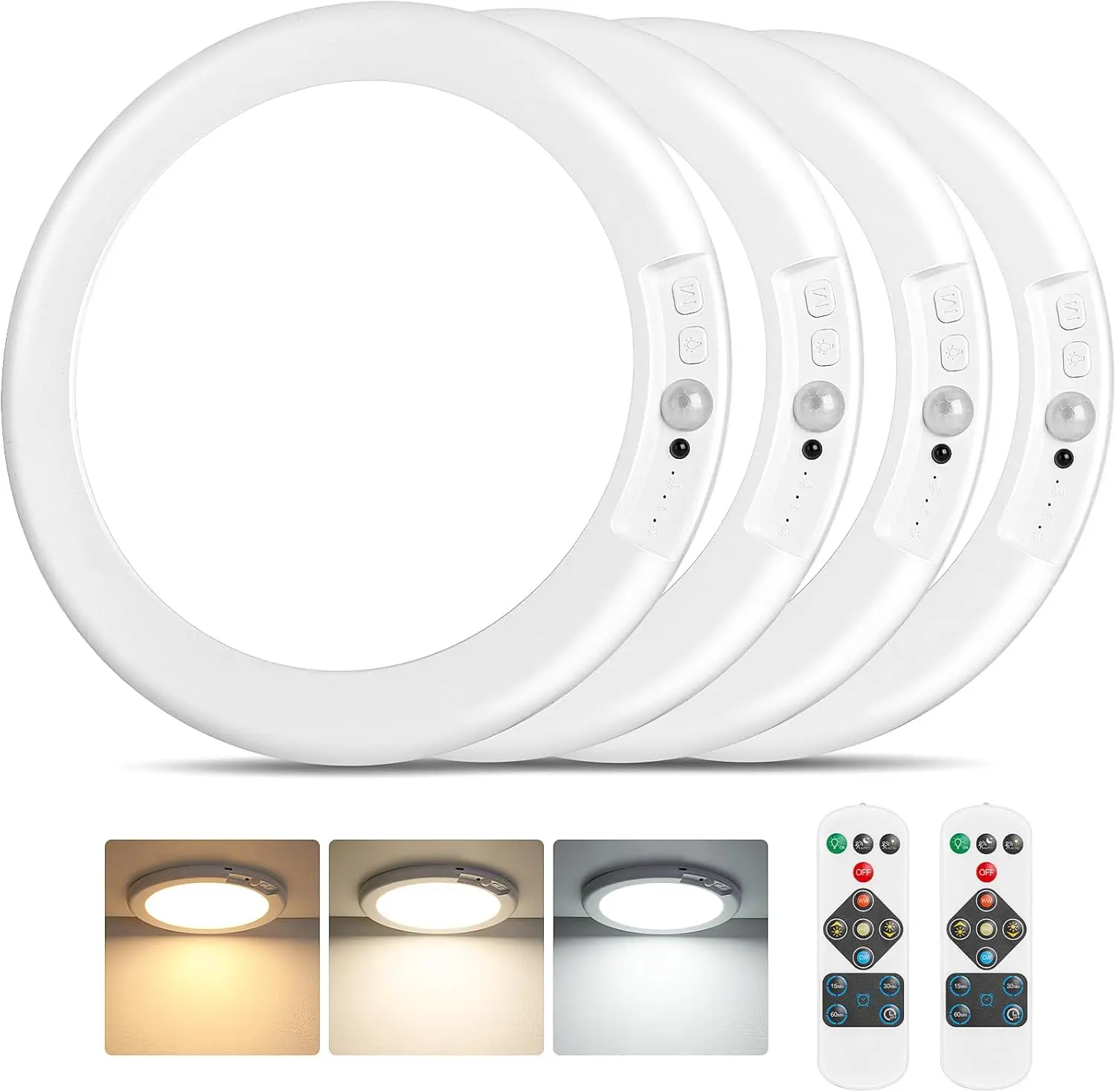 4Pcs-Rechargeable Motion Sensor Ceiling Light with Remote - Magnetic Wireless Ceiling Light Battery Powered for Closet Shower Stairs Shed Hallway Porch Patio ect