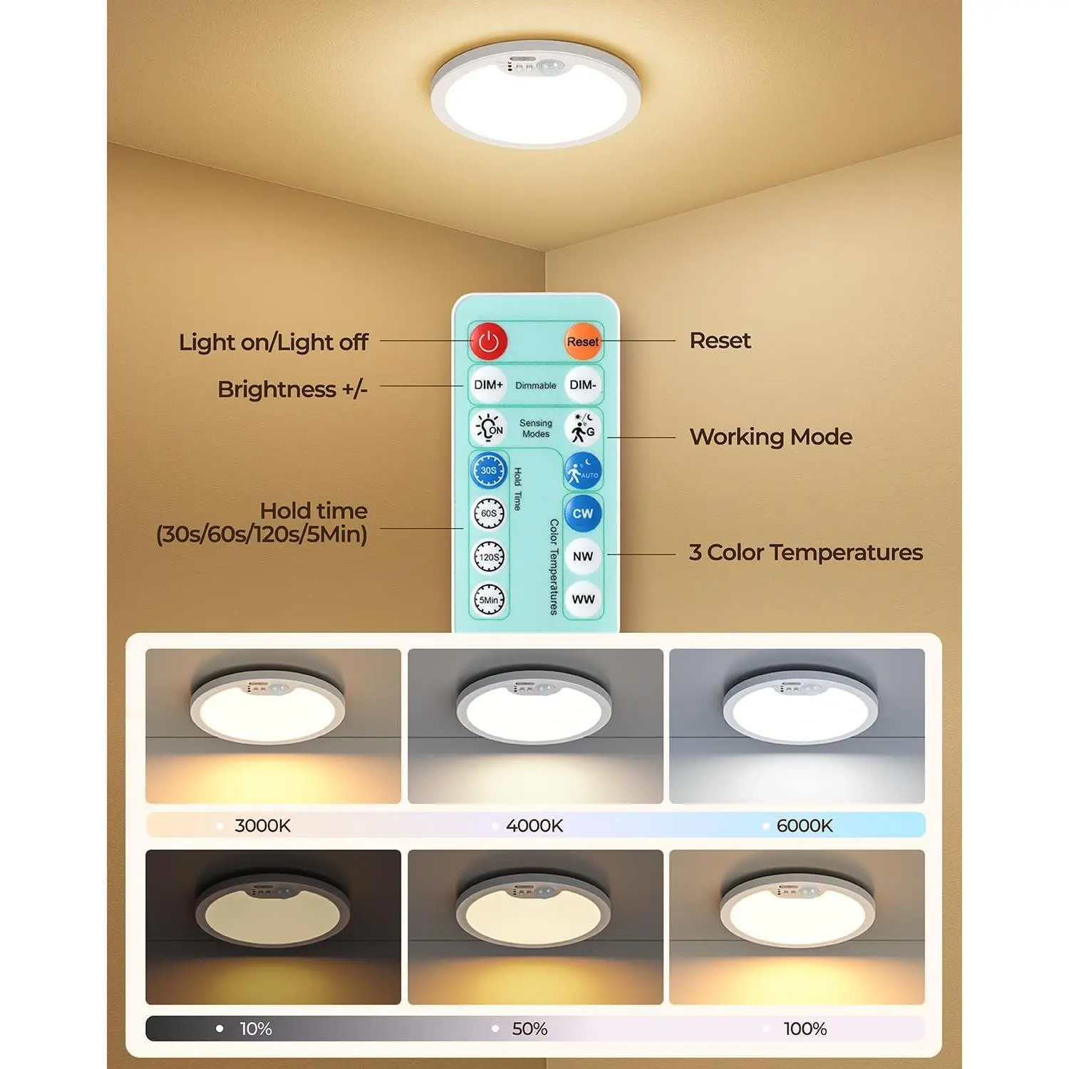 𝑴𝒐𝒕𝒊𝒐𝒏 𝑺𝒆𝒏𝒔𝒐𝒓 & 𝑬𝒏𝒆𝒓𝒈𝒚-𝑺𝒂𝒗𝒊𝒏𝒈 𝑴𝒐𝒅𝒆: Our ceiling light features a 120° motion sensor that detects movement 24/7 (3-16 ft range). In Energy-Saving Mode, you can set the light duration to 60s/120s/5mins—and if no motion is detected, the brightness automatically dims by 30% after 30s/60s/150s to save power without turning off completely.