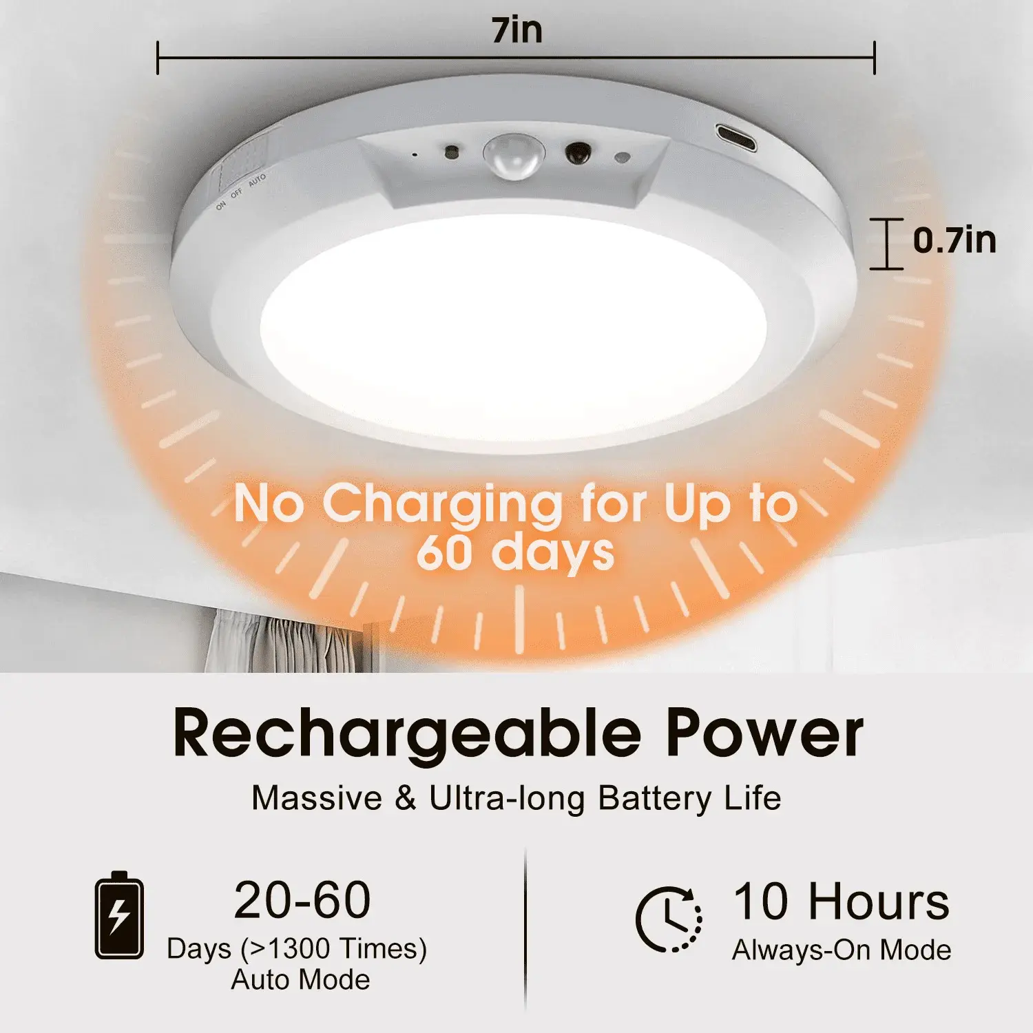 Merryhome Rechargeable Magnetic Ceiling Light is designed for modern living-wireless, smart, and super convenient.Whether you're lighting up your closet, bathroom, hallway, or pantry, this motion sensor light delivers powerful brightness exactly when and where you need it.💡