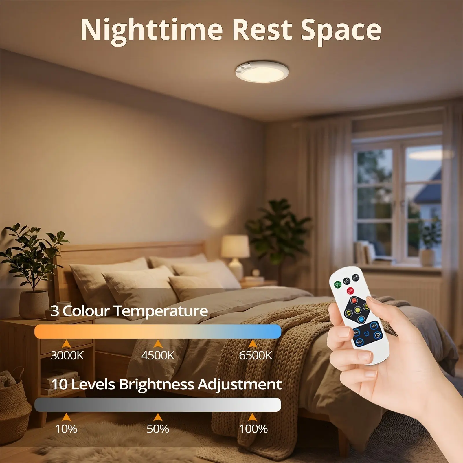 Rechargeable Motion Sensor Ceiling Light with Remote Control - Magnetic Wireless Ceiling Light Powered by rechargeable batteries for Closet Shower Stairs Shed Hallway Porch Patio ect,Suitable for various scenarios, easy to install
