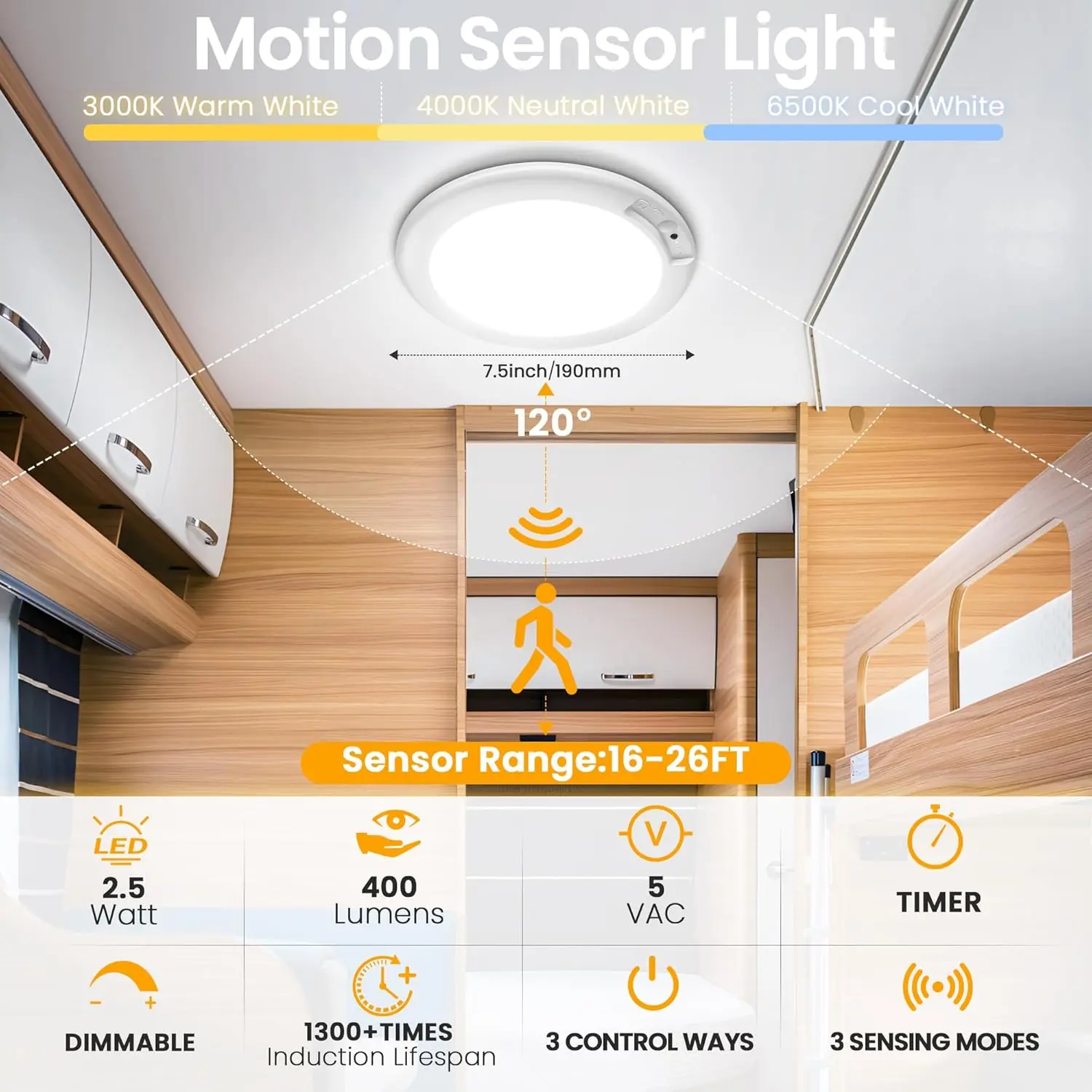 Built-in Rechargeable & Long Lifespan: No need to buy to replace! sensor lights built in 4000mAH rechargeable . The motion-detection ceiling light fixture can be for 15 hours in the highest brightness and constant light mode, and 60 days in induction mode.