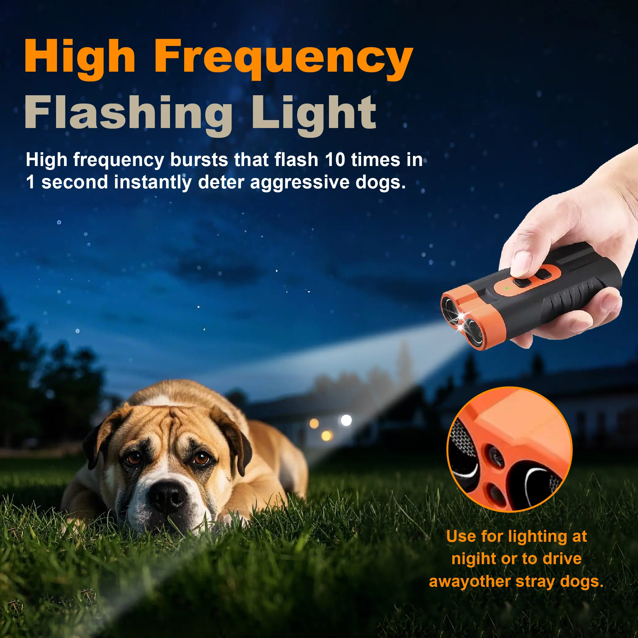 My dog's bark is someone breathes too loud.. this whistle really works and it has a flashlight..