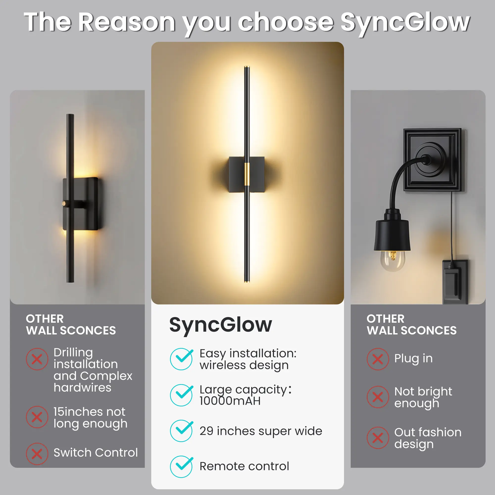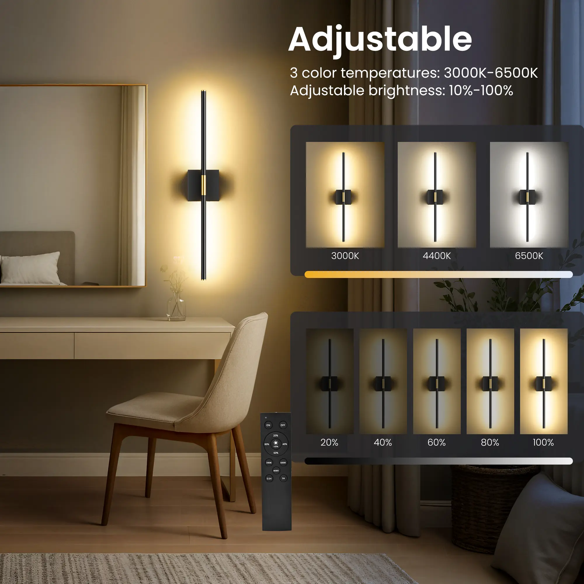 ·[3 Lighting Temperatures & 5 Brightness Modes with Time Control] The wireless battery operated wall sconce which comes with romote control can offer white, neutral, and warm light with 20%, 50%, and 100% dimming options. It can be also controlled to work in 0.5 hours.