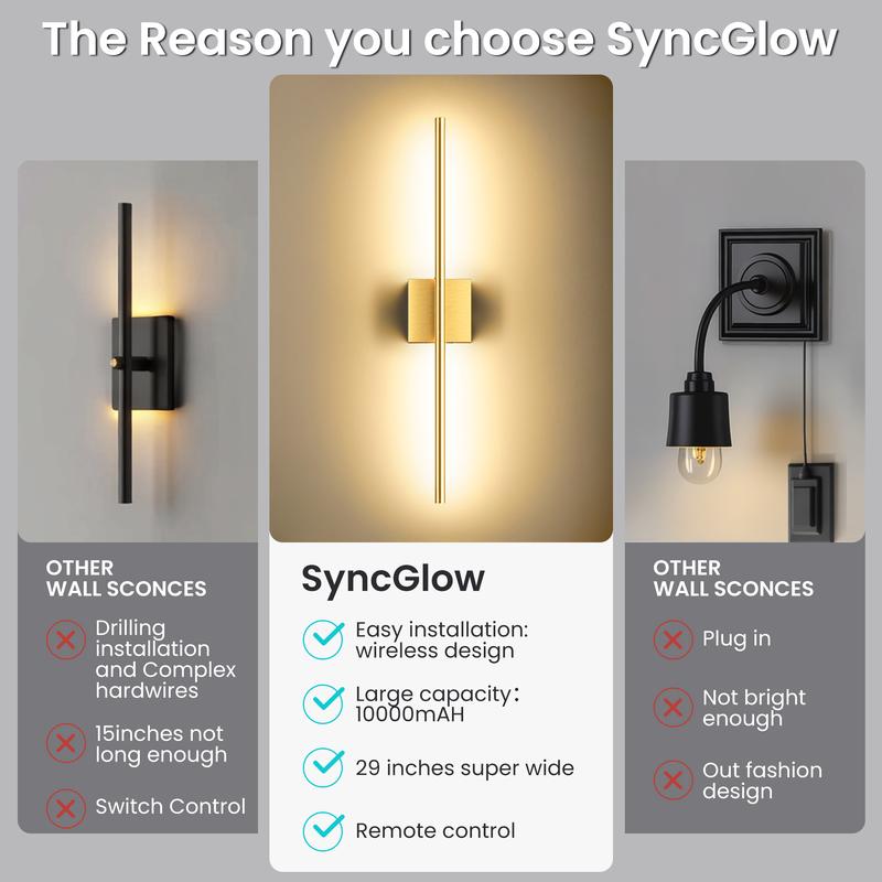 ·[3 Lighting Temperatures & 5 Brightness Modes with Time Control] The wireless battery operated wall sconce which comes with romote control can offer white, neutral, and warm light with 20%, 50%, and 100% dimming options. It can be also controlled to work in 0.5 hours.