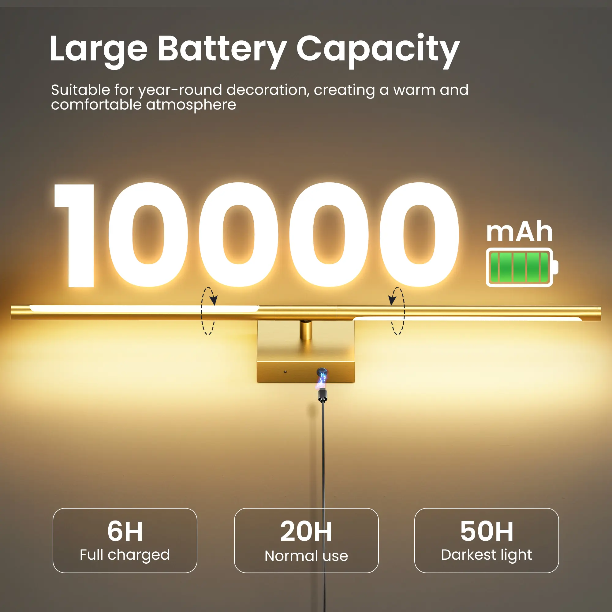 ·[Long Working Hours & Short Charging Hours] Equipped with a 10000mAh Battery, our rechargeable battery operated wall lights can continuously work for 30-50 hours at different brightness levels to meet your daily needs. It only takes 5 hours for the light to be fully charged, and the color of the indicator lights in the light arm will indicate whether it's fully charged or not.