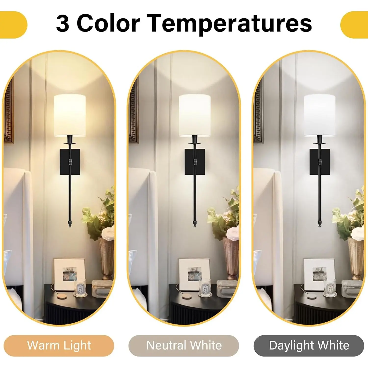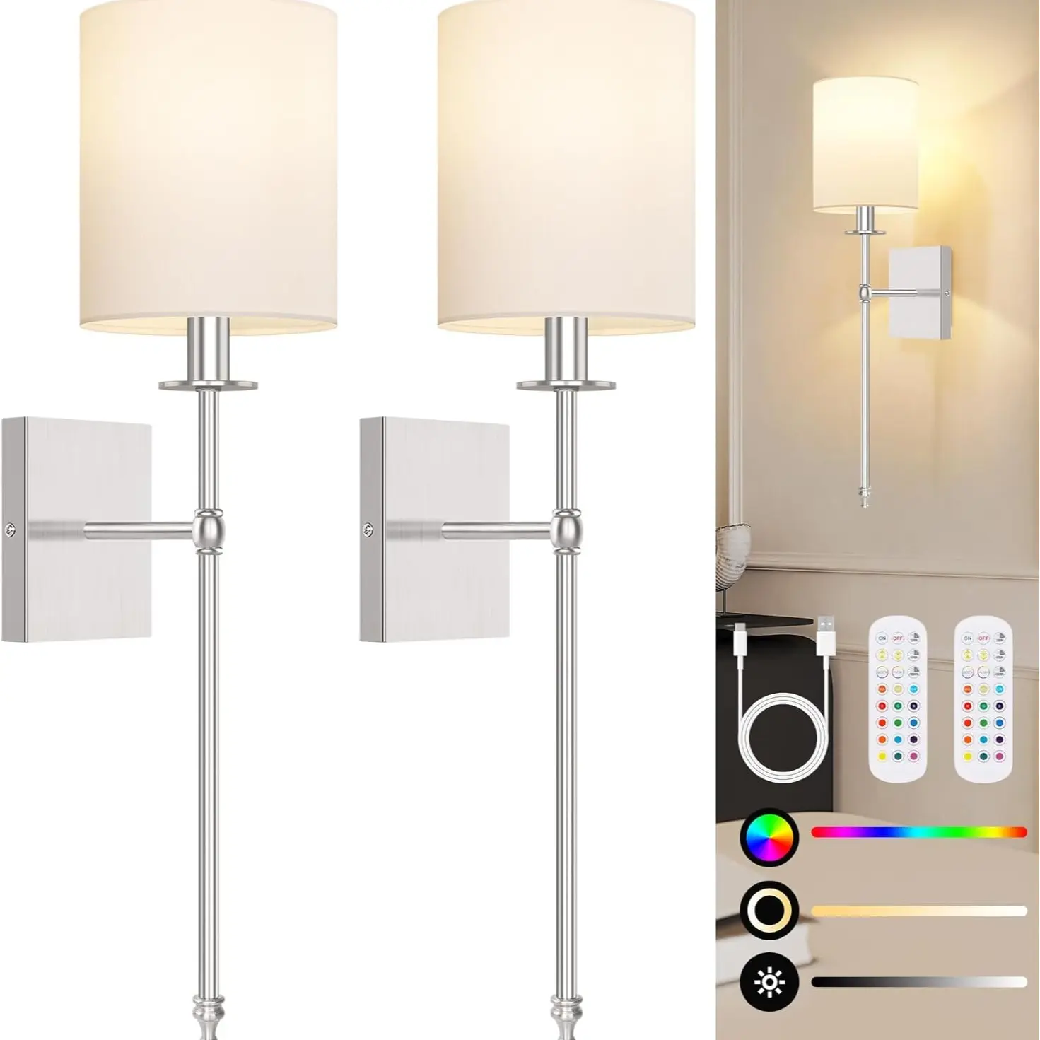 27 Inch Rechargable Wall Sconces Set of 2, Wireless Wall Sconces Lights with Remote, Not Hardwired Dimmable Gold Wall Lamps with White Fabric Shade for Bedroom, 2 Rechargable Bulbs Included