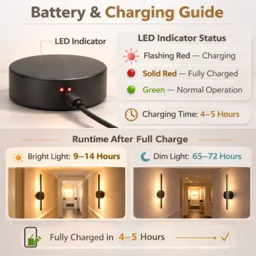 Featuring a unique magnetic rechargeable battery that easily clicks out. This wall sconce powers up in 4–6 hours, delivering 18 hours of bright light or 72 hours in soft-glow mode. Take the battery anywhere to charge, making this setup the most flexible ever.