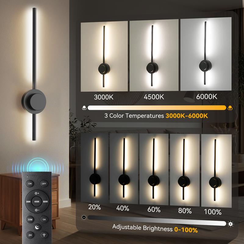 Adjust brightness from 1% to 100% and set a 30-min or 1-hour auto-off timer. Perfect for bedtime or saving energy. This rechargeable wall sconce offers smart features that simplify life. It supports remote control and touch control stepless dimming.