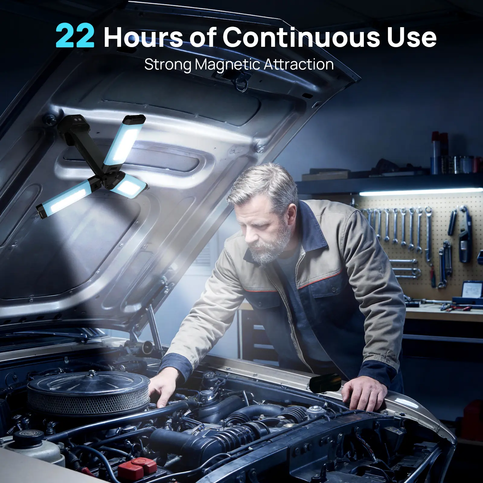 Equipped with triple LED lamp heads, this light ensures broad coverage. It allows 180° vertical and 270° horizontal adjustment. The adjustable design suits various lighting needs, whether for detailed or wide areas. Ideal for flexible and portable work environments.