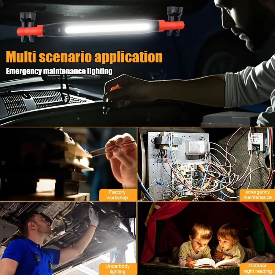 [Multi-Scenario Application] – Ideal for car repairs, workshops, garages, emergencies (hurricanes, power outages), camping, hiking, exploration, and more. Dual strong magnets on both ends allow for horizontal mounting on any magnetic surface. Plus, two hidden swivel hooks offer convenient hanging options.