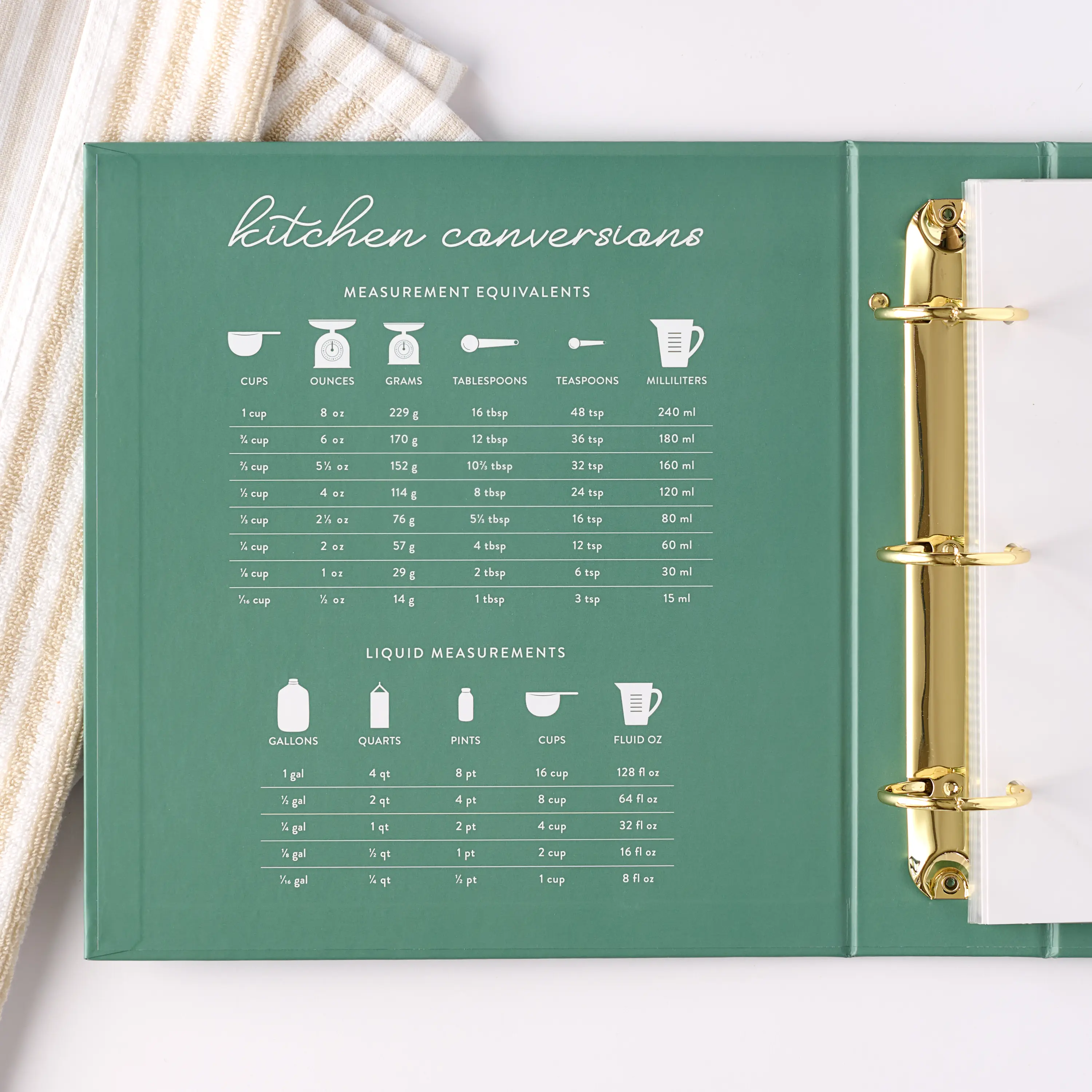 Elevate your cooking with this green PPP recipe binder! Perfect for organizing PPP menu plans or family favorites, it ensures recipes are passed down through generations. Choose from various colors and patterns to match your decor. Each design includes "Happiness is homemade" in gold foil and a kitchen conversion chart inside.