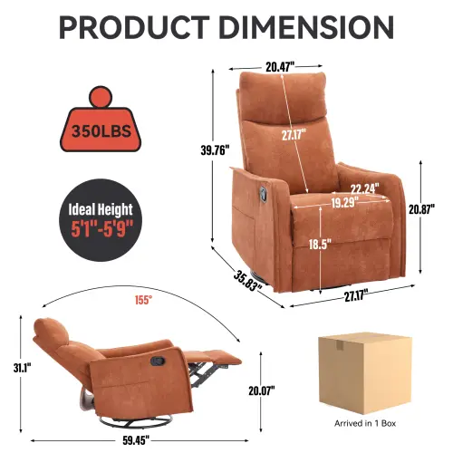 ·360°SWIVEL AND ROCKING RECLINER: The swivel recliner chair has a black metal base that allows for a smooth and gentle 360 degree swivel, and the function of rocking can also make you feel more comfortable and relaxed. You can pull the side button to control the recline of the recliner chair, which means you can get any position you want, it's reclining 155 degrees maximum.