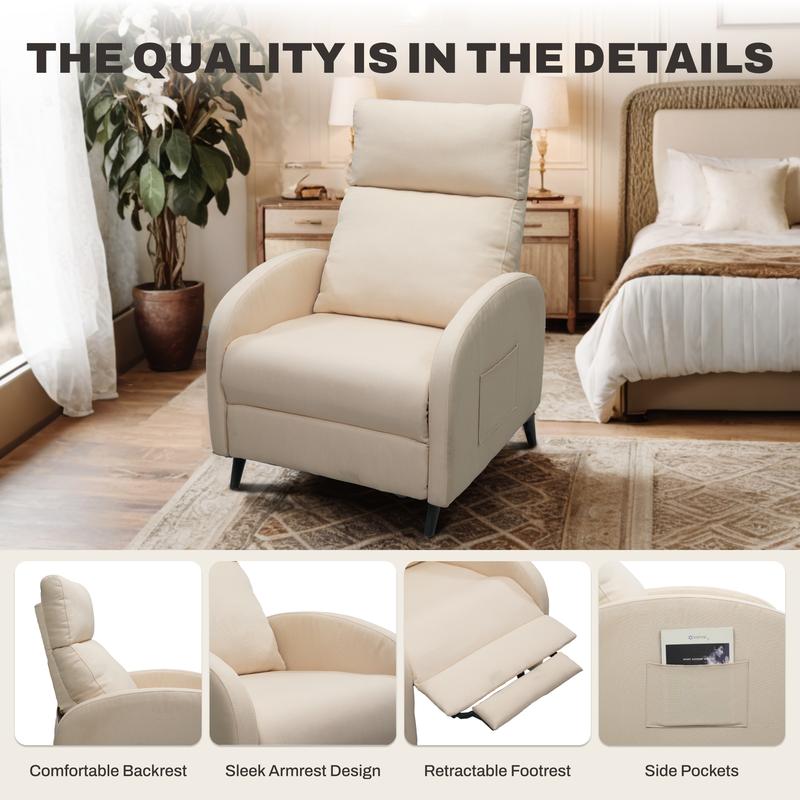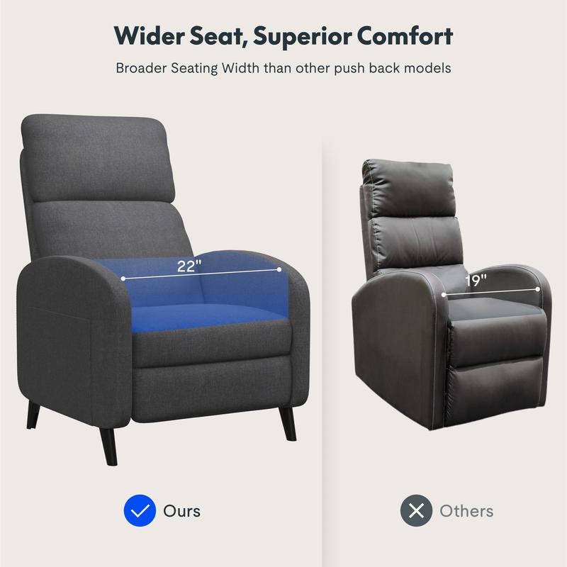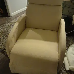 Good comfortable little recliner. Great for small spaces! Just one thing that bothers me is that when reclined it’s hard to stay reclined….it kind of ejects you forward. I guess cus it’s new…..
