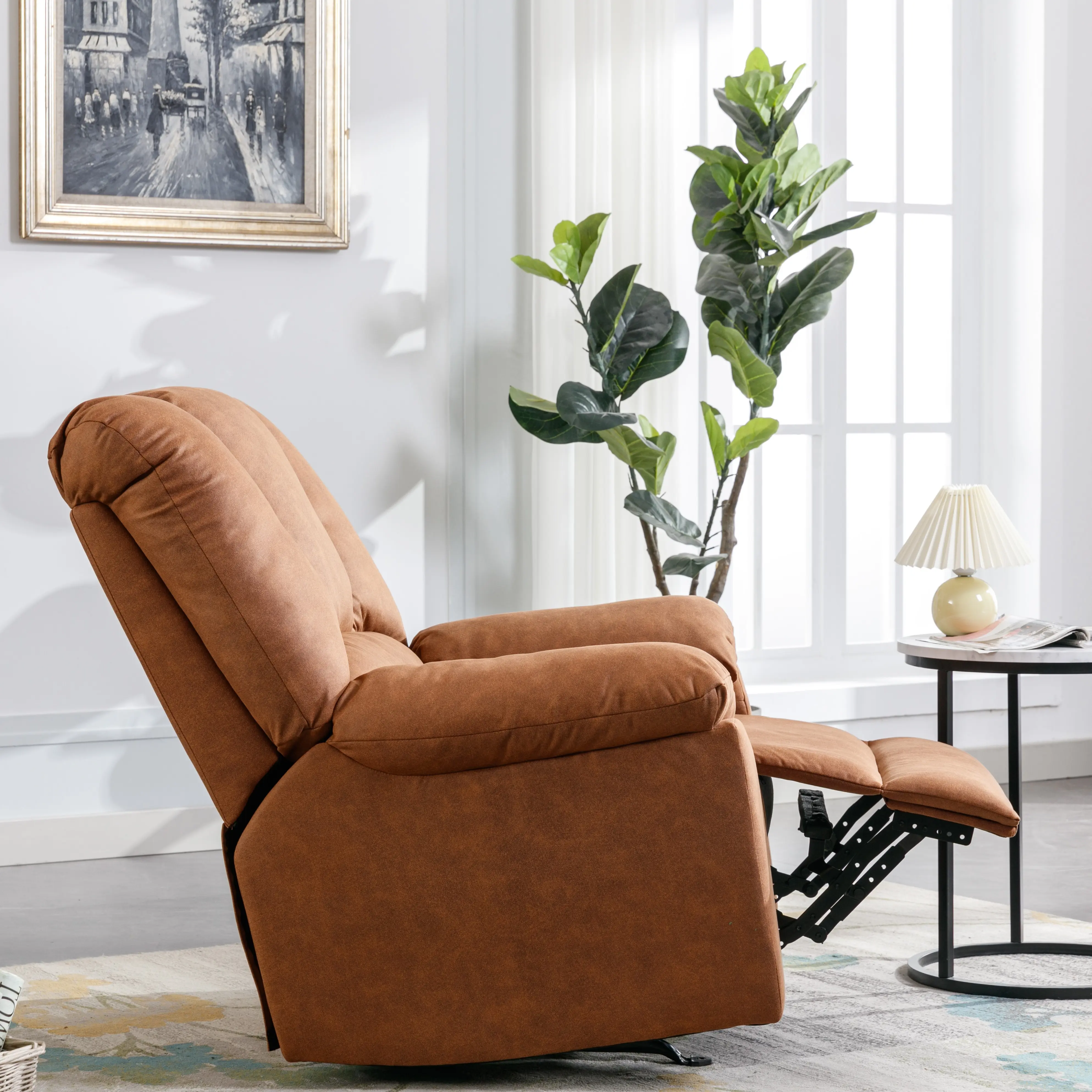 ·Sleek and Modern Design: Upholstered in rich brown leather, this recliner adds a touch of sophistication to any room decor, while its modern design enhances the overall aesthetic.