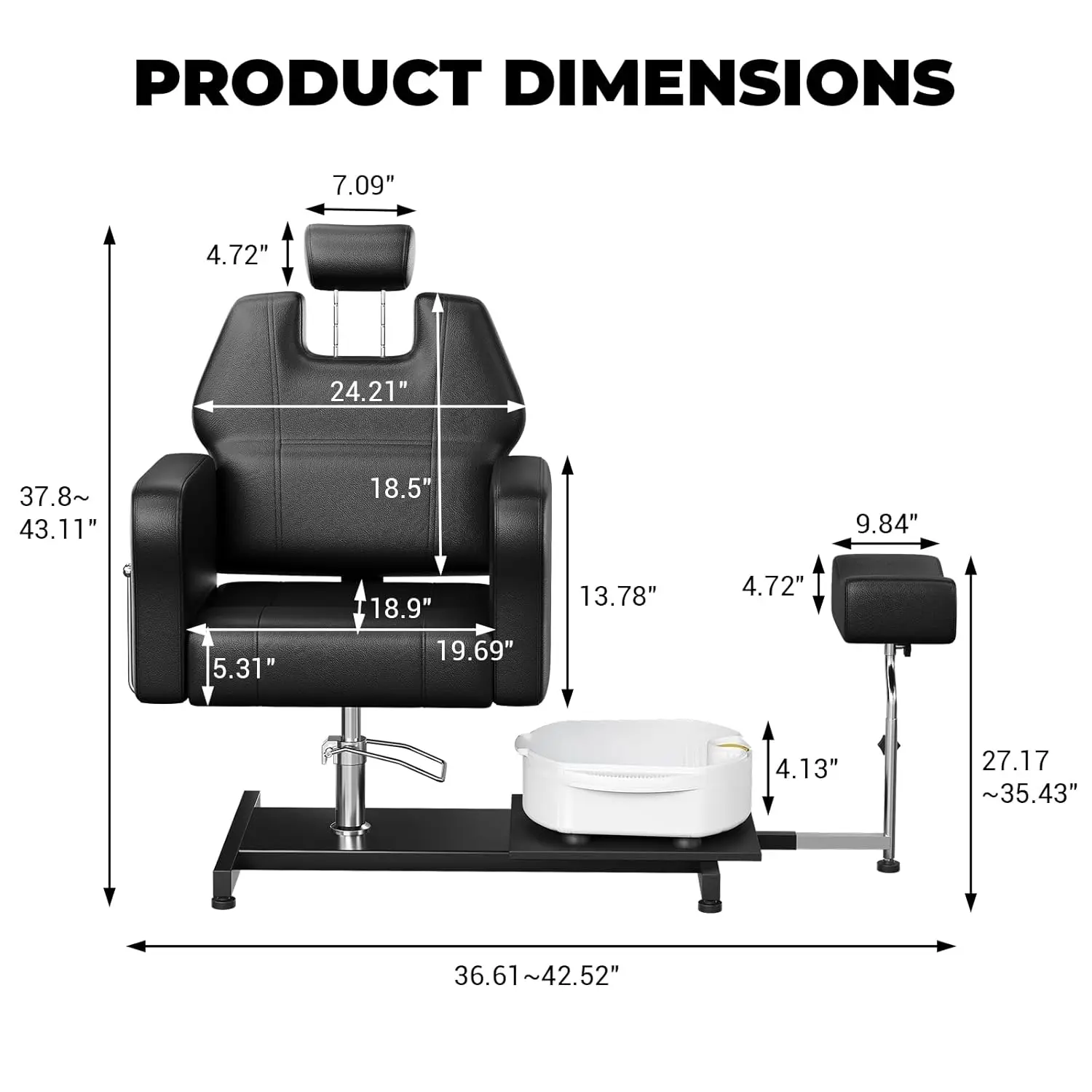 ·[CUSTOMIZABLE FOOTREST FOR EVERYONE] Inclusivity is at the forefront of our design, as our pedicure chair includes an adjustable footrest that accommodates clients of all sizes. The foot pedal can be raised or lowered from 20 to 30 inches, with a horizontal range of 14 to 23 inches, making it easy to find the perfect fit. This thoughtfully designed footrest provides exceptional support and comfort, allowing each client to enjoy a personalized and relaxing experience tailored to their needs.