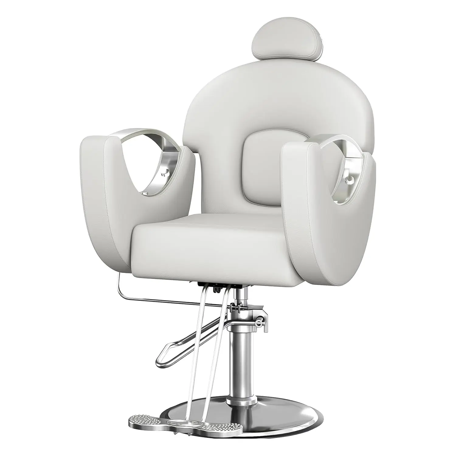 ·【Intuitive Salon-Grade Adjustability】- Silky-smooth hydraulic lever reclines seats from 90° (upright) to 135° (near-flat). Rotate clients 360° for precision work, adjust height (38"-43") with intuitive controls, and customize the detachable headrest—seamlessly accommodating all body types.