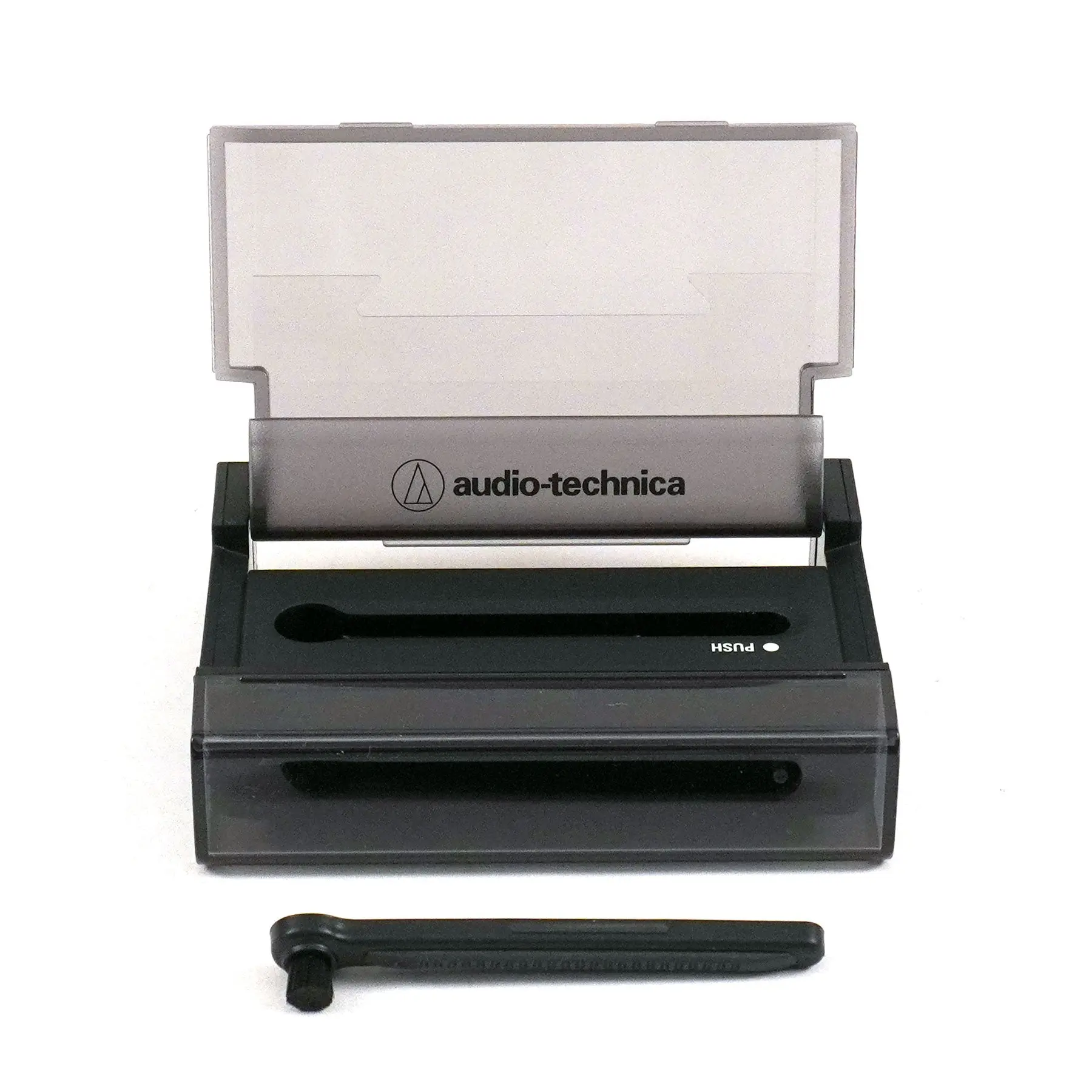 Ever get frustrated by pops and crackles ruining your favorite vinyl tunes? The Audio-Technica AT6028 3-in-1 Record & Stylus Cleaning Tool is here to save your listening sessions! This clever gadget combines a velvet record brush, a nylon stylus brush, and a handy fold-out cover stand all in one compact package. Before spinning your vinyl, swipe the velvet brush across the record to sweep away dust and reduce annoying playback noise. When it's time to clean your stylus, simply fold out the nylon brush to gently remove debris, protecting your needle and improving sound clarity. Plus, once your record is playing, flip out the built-in stand to proudly display your album cover art—because good music deserves a good showcase. The tool measures just 3.6 by 0.83 by 3 inches, fitting perfectly in your audio setup or record bag. Whether you’re a casual listener or a vinyl enthusiast, this handy cleaner keeps your records and stylus in top shape for hours of smooth, crackle-free music. Ready to upgrade your vinyl care routine? Add the Audio-Technica AT6028 to your cart and enjoy cleaner, clearer sound today!