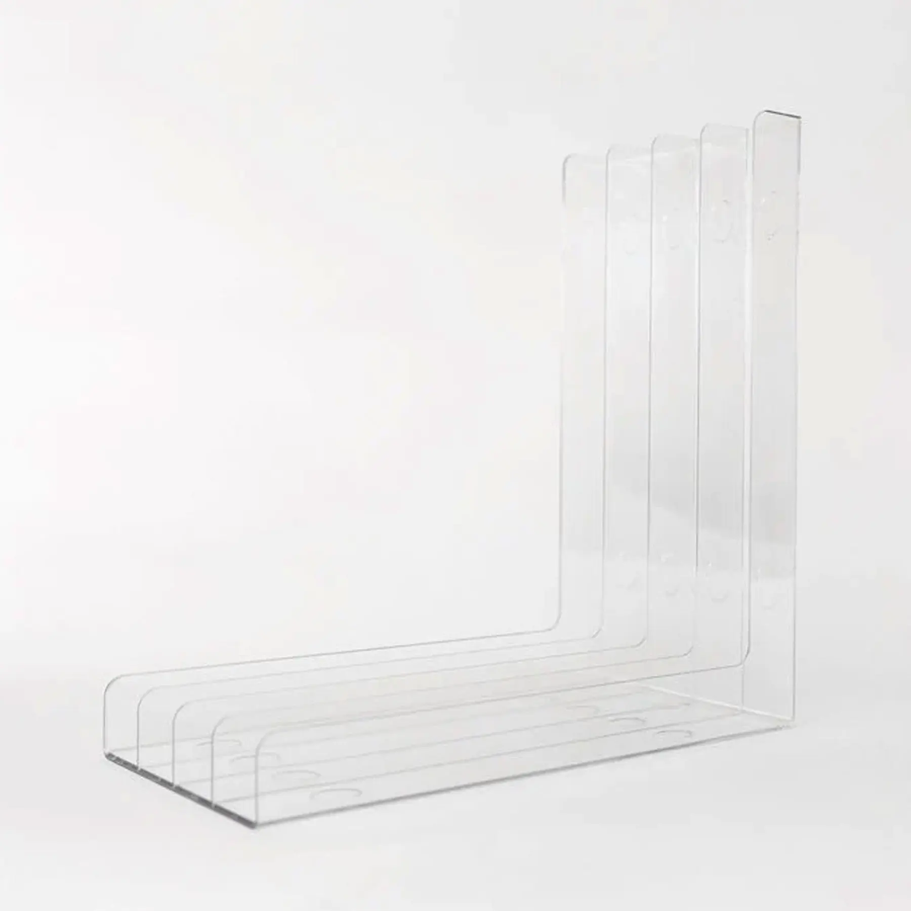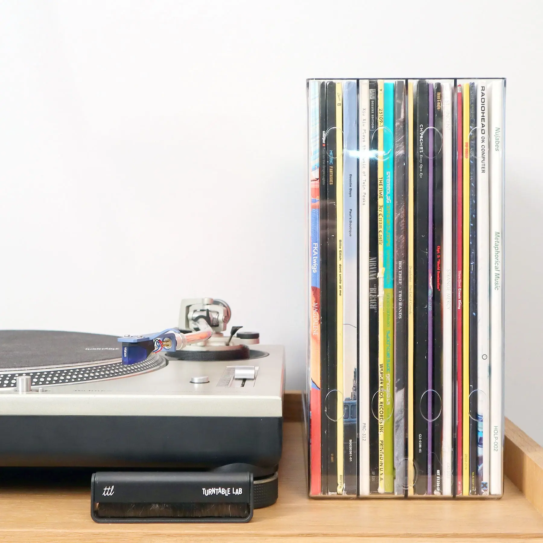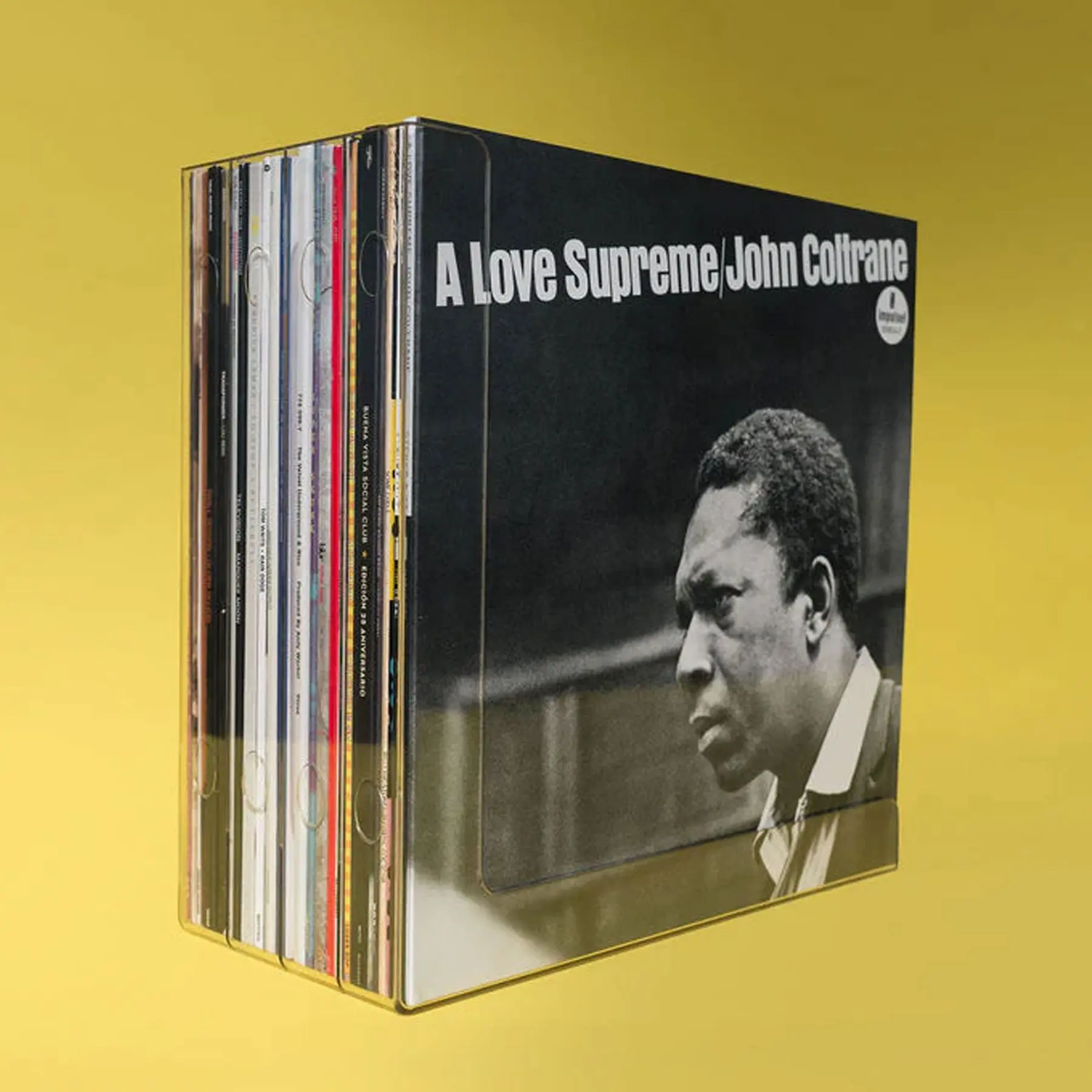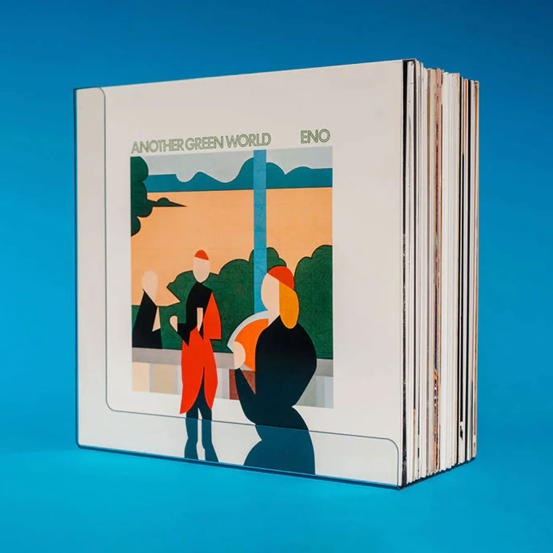 "Turn any flat surface or table into record storage that shows off your collection! Versatile, use as a "now playing" stand for a night of hand picked records, store newly purchased records until cleaned and filed away, loosely store those prized records to keep them at their best, or use as a bookend in existing storage shelves or units. For new collectors a great way to store your growing collection." - Record Corner