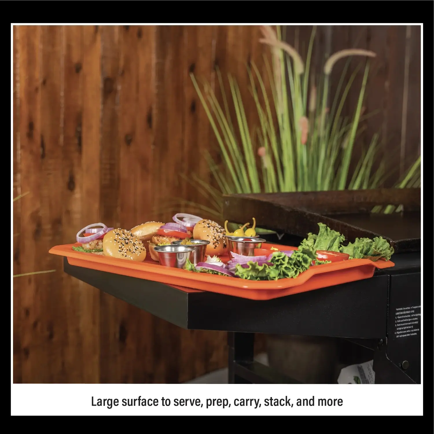 Have designated trays that fit perfectly on the side shelves of your griddle so you can start using space more efficiently. Do you often have to trek back into the house to grab plates of food for the griddle and get frustrated when you run out of space? Minimize that frustration with the Serving tray set designed with the ultimate griddle lover in mind. Measuring 19" by 13.5," these trays will give you plenty of space to prepare, serve, and transfer large amounts of food with ease. Put a tray on each side; one for food that needs cooking, and the other to place cooked food that's ready to be served. Each tray has two handles that make it comfortable to carry. Easily clean the trays by running them in the dishwasher after you've finished your griddle feast.