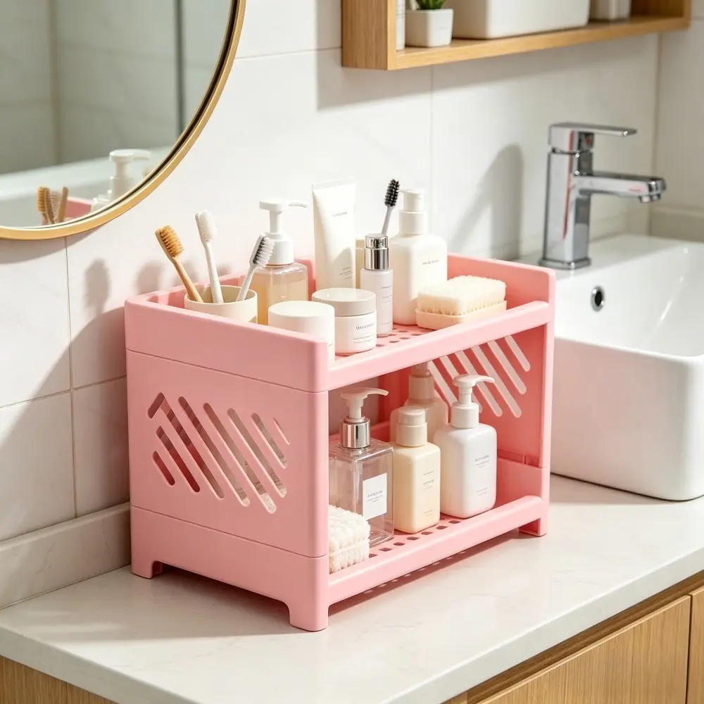 Rectangular Bathroom Storage Shelf – Multi-Purpose Organizer for Bathroom, Desk, Cosmetics & Stationery