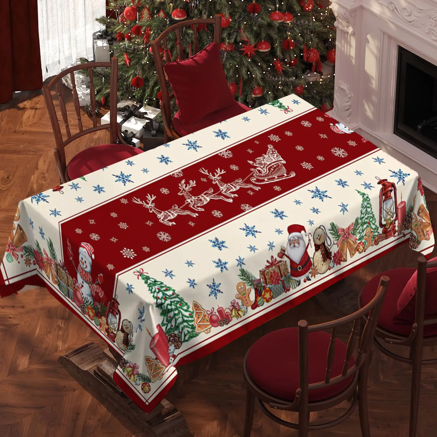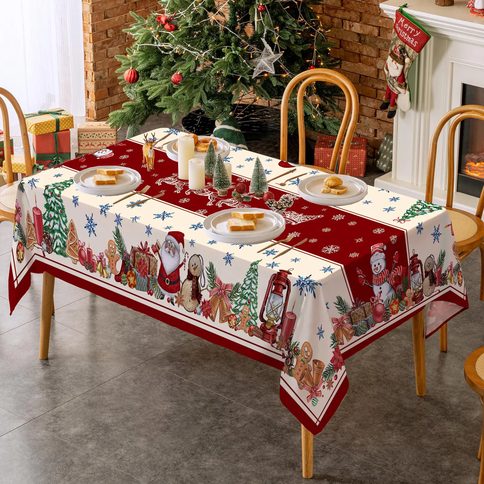 Rectangular Christmas Tablecloth, Gingerbread Man Snowman Design, New Year Party and Dinner Decorations, Best Christmas Gift