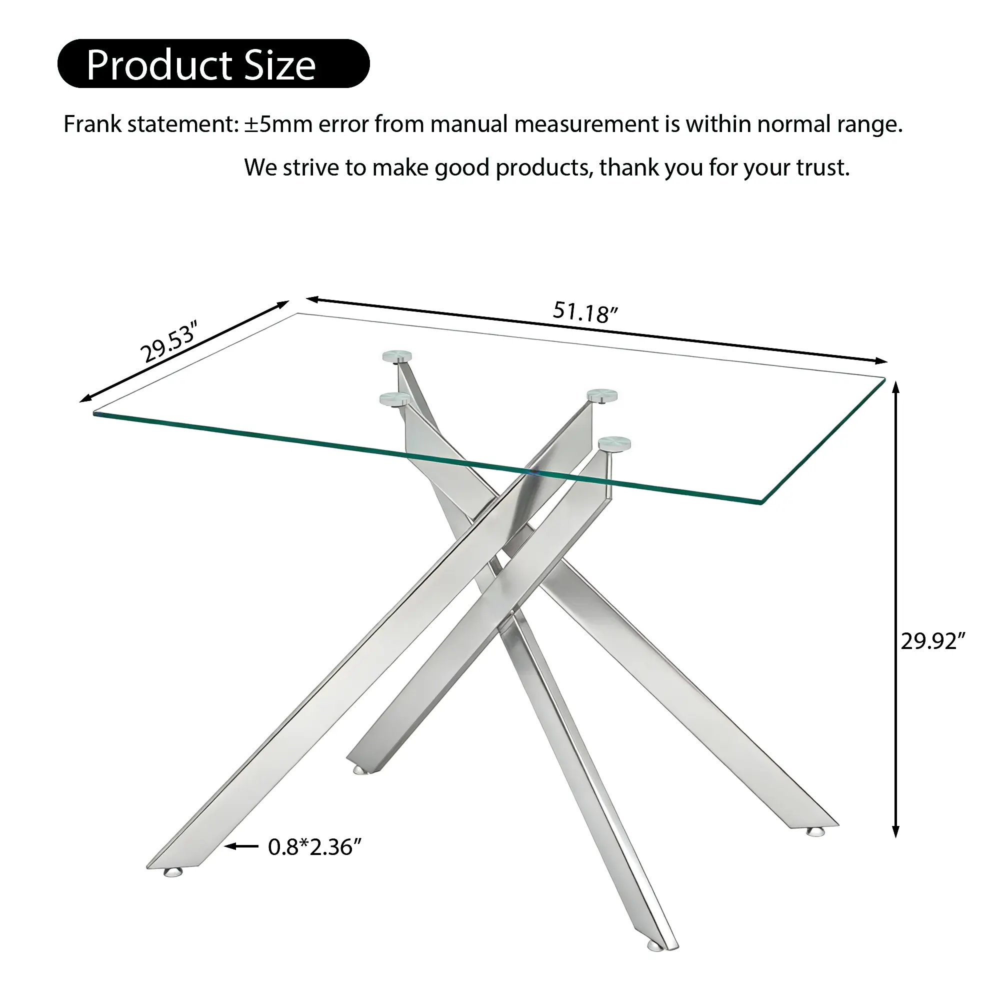 ✨ Product Dimensions: W51.18"D29.53"H29.92", net weight: 52.8lbs, weight capacity: 180lbs. This table is crafted for durability and longevity with 8mm thick tempered glass, resistant to scratches and breakage.