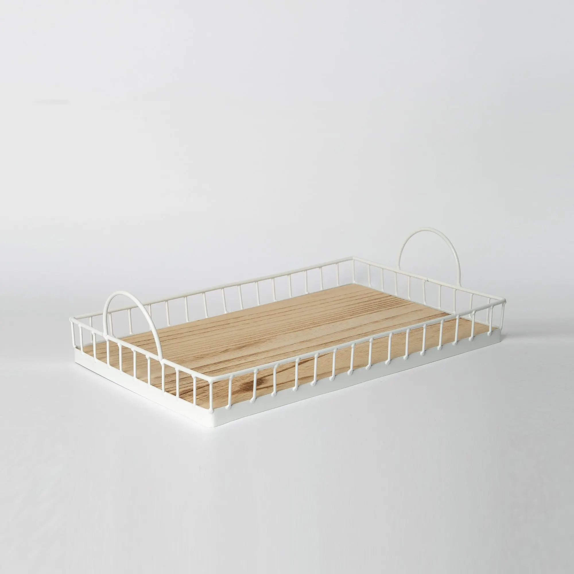 This stunning rectangular tray is crafted from a combination of metal and wood for a charming rustic look. Its sturdy construction and raised edges make it an ideal choice for a coffee table centerpiece or serving tray. Sleek and stylish, this tray is the perfect choice for an effortless touch of class.