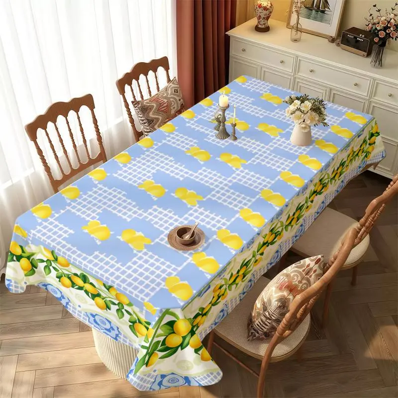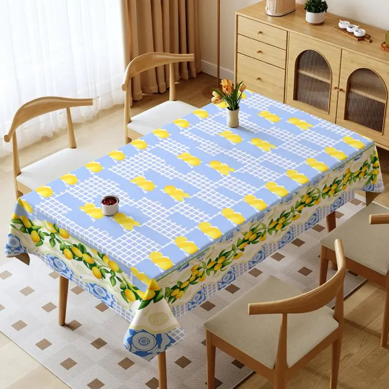 Rectangular Polyester Tablecloth, Multiple Specifications Available, Multi - Color, with Lemon & Grid Patterns, Easy to Clean, Perfect for Daily, Festival & Anniversary Use, Creating a Festive Dining Scene