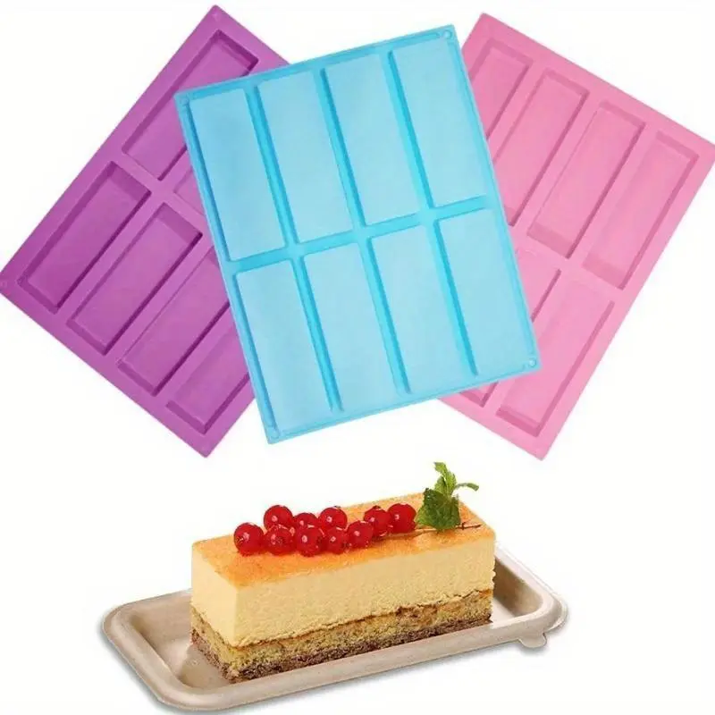 8 Cavity Cake Mold Rectangular Chocolate Silicone Mould Soap Mold Baking Mould Ice Cube Mold DIY Kitchen Tools Decoration Mold
