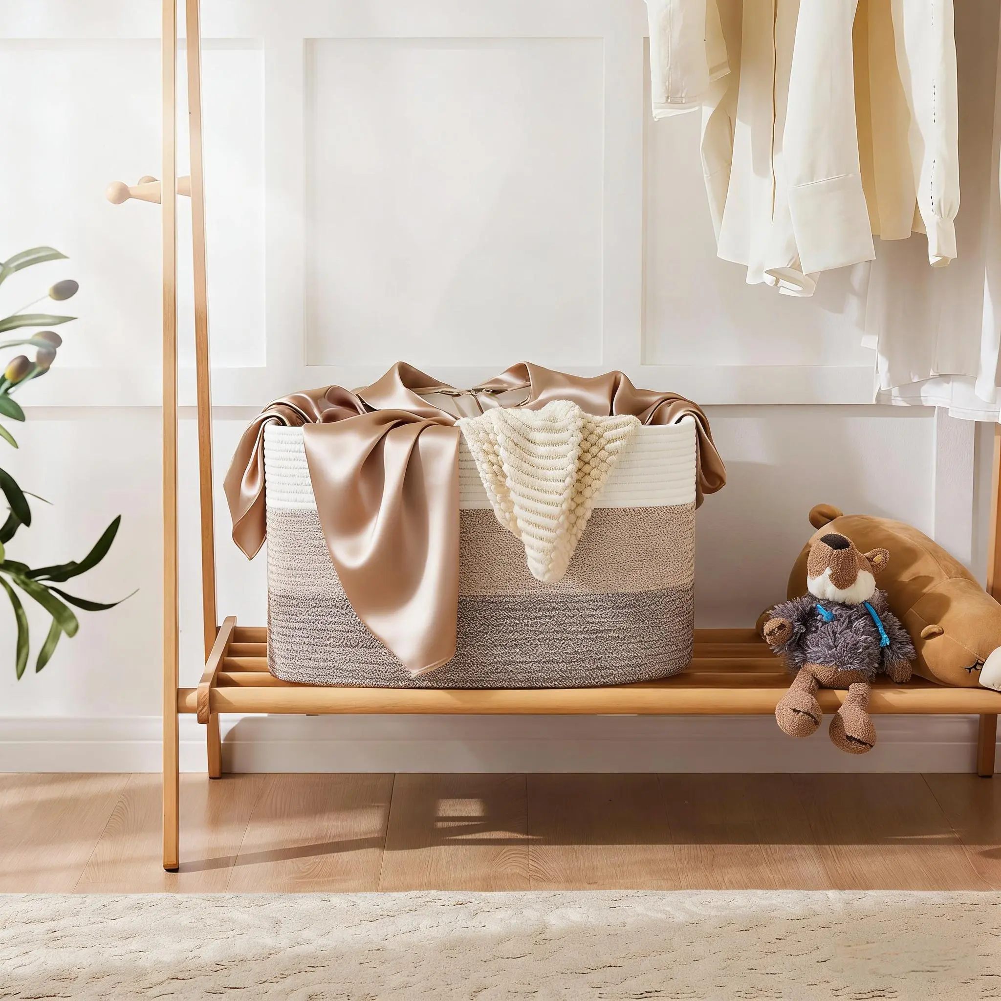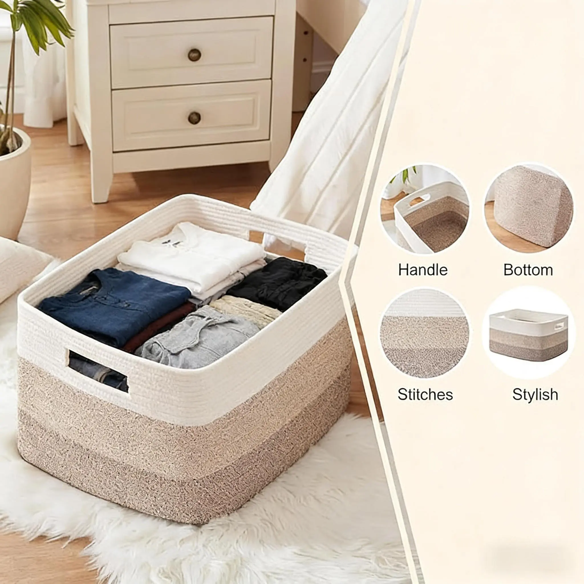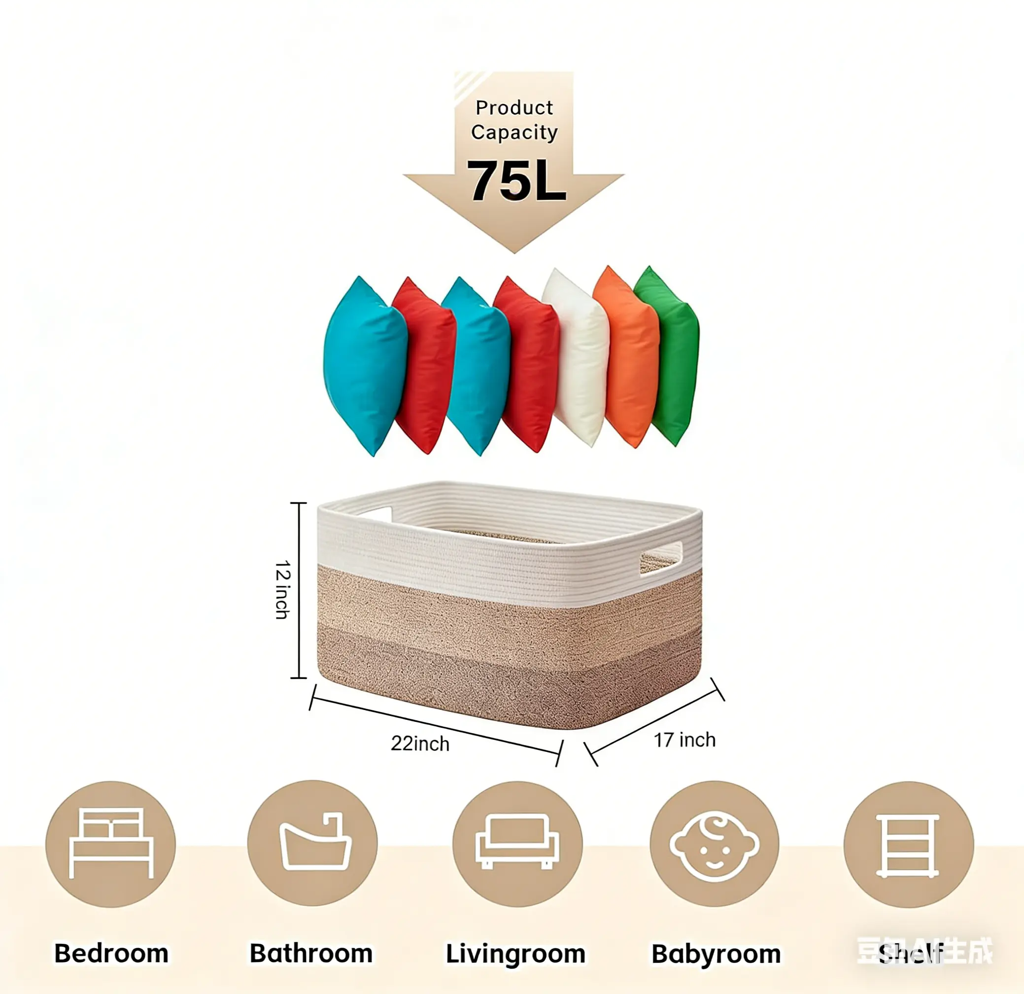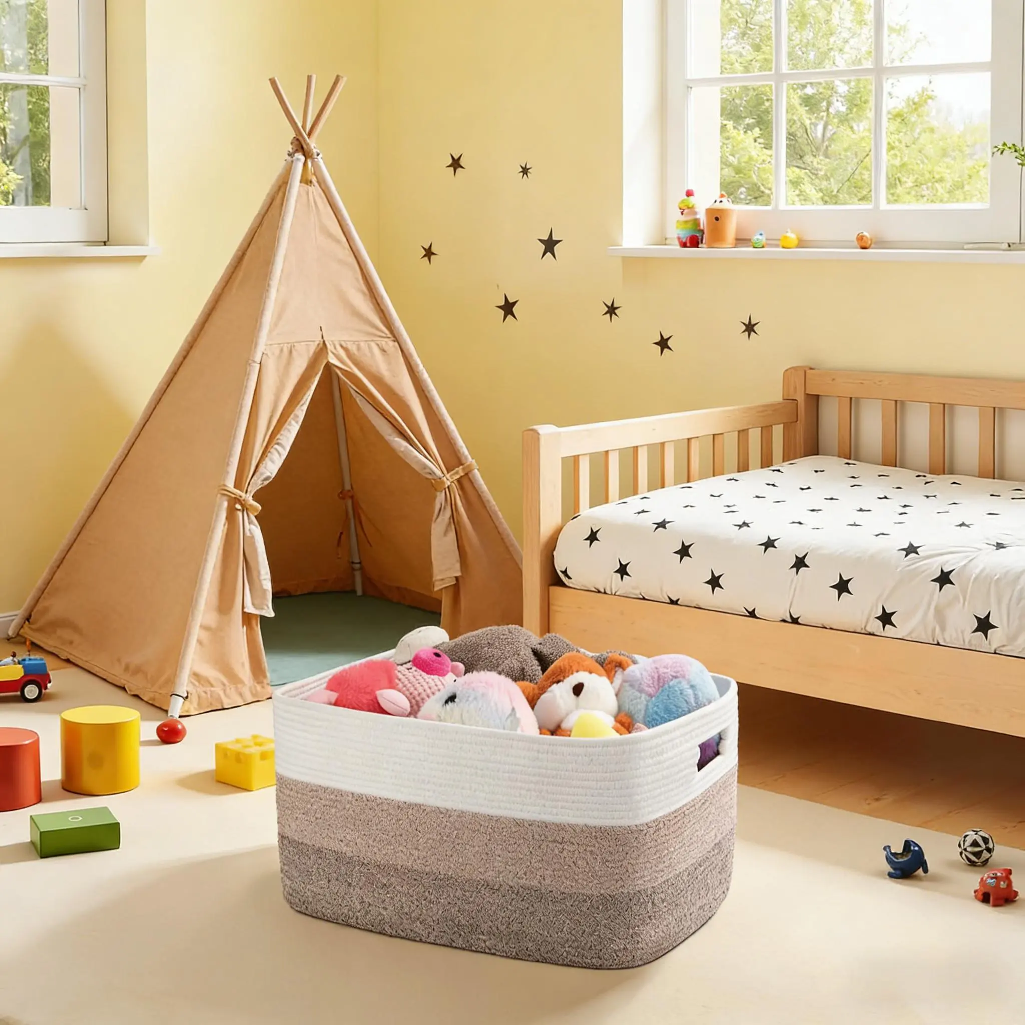 Measuring 22” x 17” x 12”, this large-capacity basket offers ample room to store nursery blankets, living room throws, kids’ toys, and more. The built-in handles make it easy to carry between rooms, while the durable woven construction ensures long-lasting use. Whether you’re tidying up the nursery, decluttering the living room, or organizing the bathroom, this versatile basket seamlessly fits into any decor, keeping your essentials neatly contained and easily accessible.