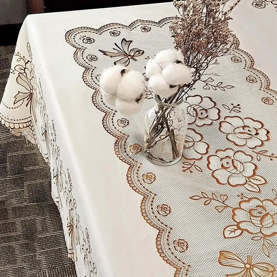 【Waterproof Material】: This tablecloth is made from PVC, ensuring a waterproof surface that protects your table from spills and stains.