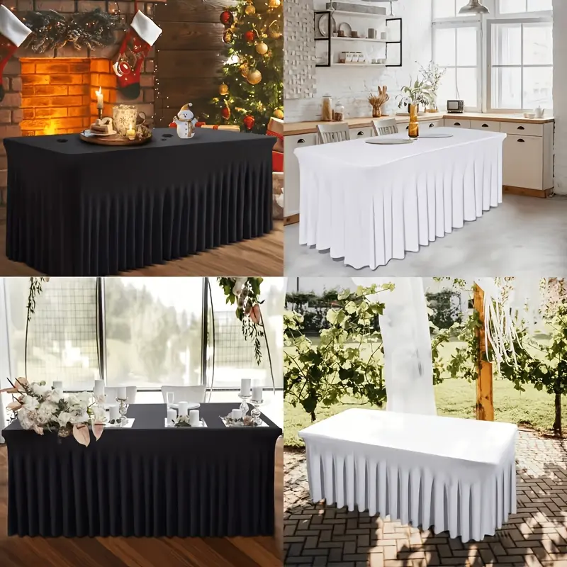 Rectangular Tablecloth Decoration with Skirt - Wrinkle-Resistant Table Cover in Black/White for Weddings, Birthdays, Anniversaries, Graduations, Easter, Hanukkah, Thanksgiving Events