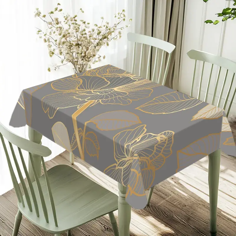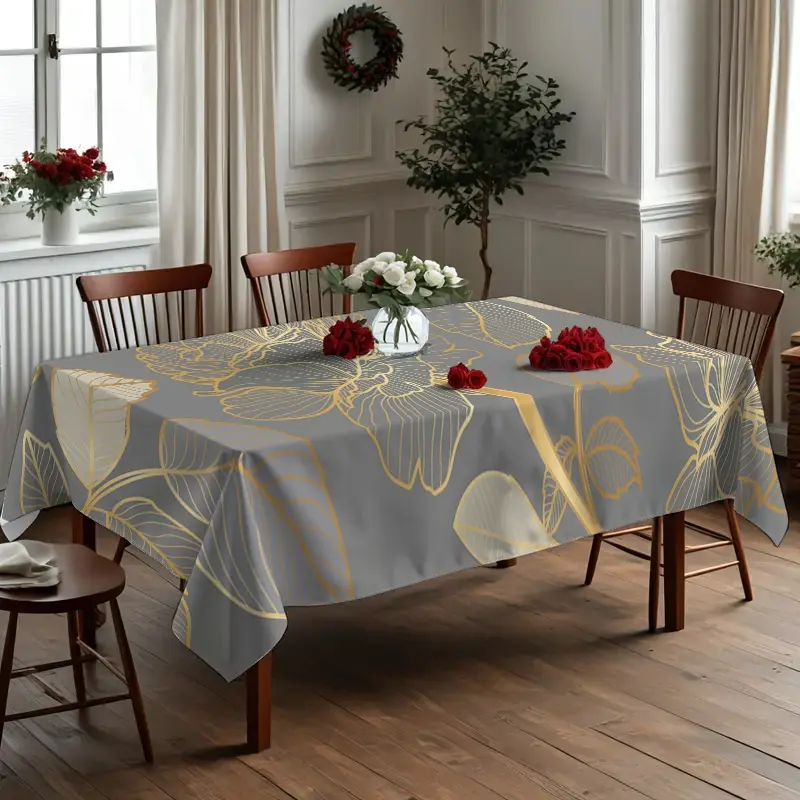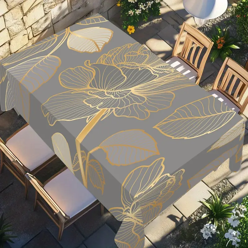 Rectangular Tablecloth, Picnic Table Cover with Luxury Design, Gold Rose and Leaf Pattern, Stylish Decor for Indoor and Outdoor Dining, Perfect for Festivals, Weddings, Parties, and Picnics