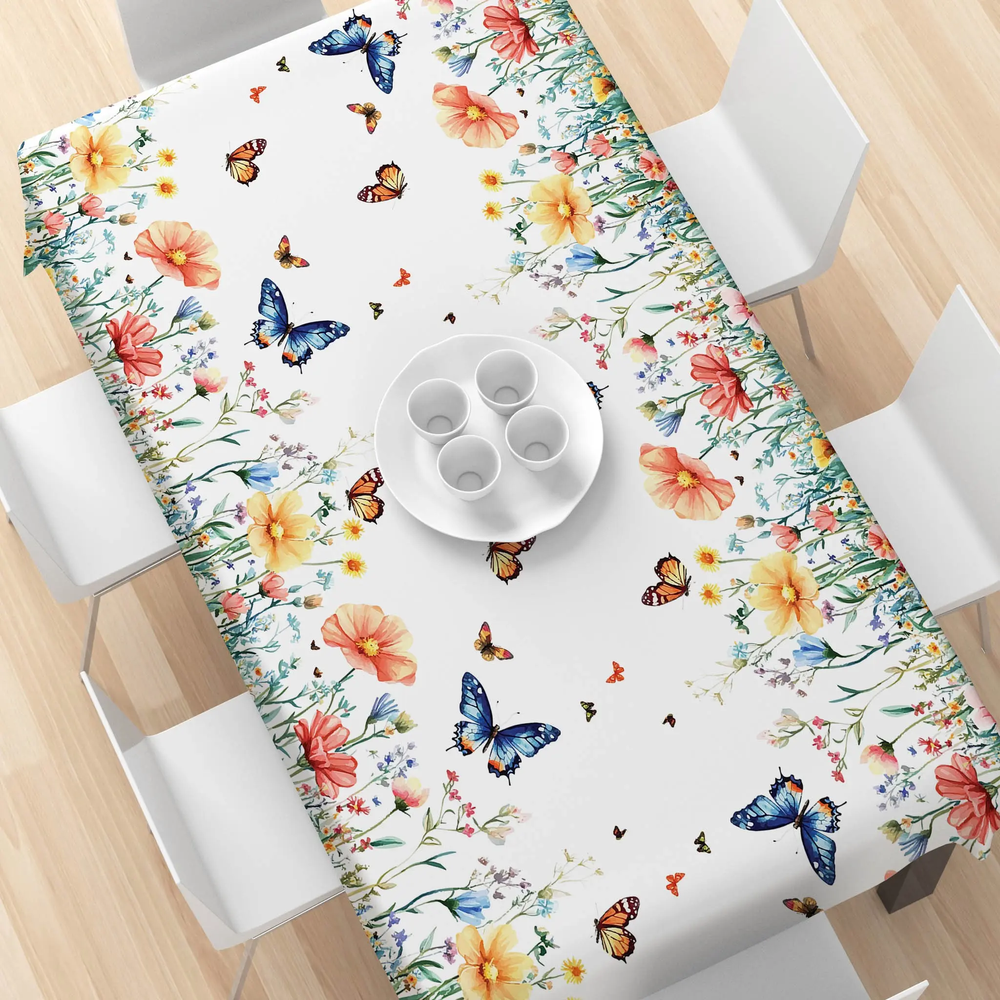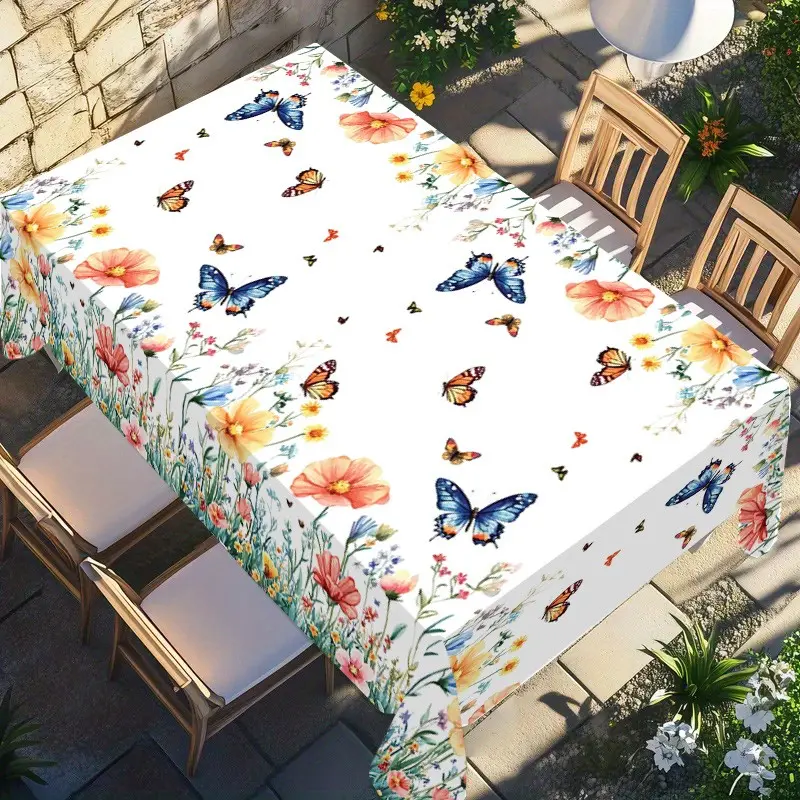 Rectangular Tablecloth Spring Summer Watercolor Flower Butterfly Pattern, Kitchen Decor, Wedding Party Garden Outdoor Picnic Cloth