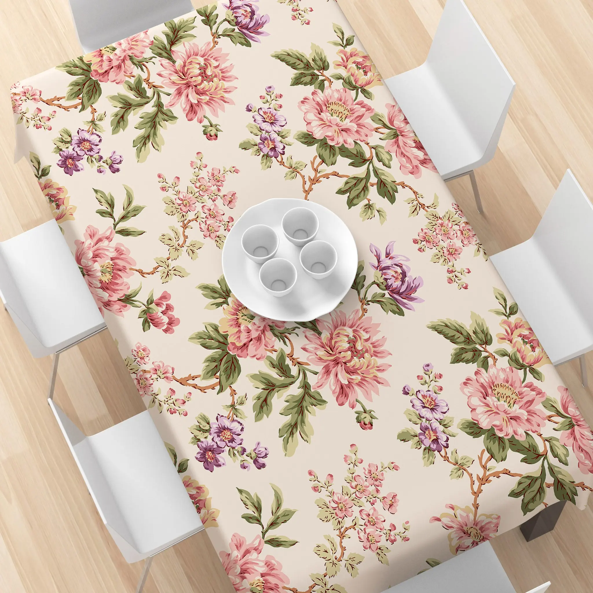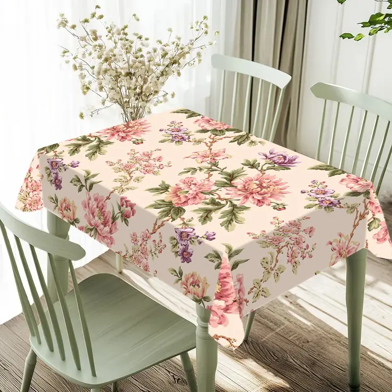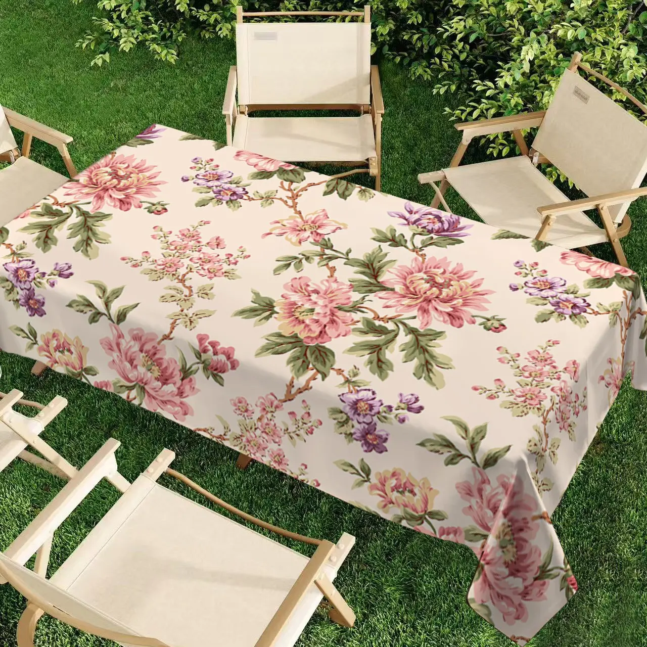 Rectangular Tablecloth Spring Summer Vintage Peony Pattern Washable, Floral Jacquard Fabric, Indoor Outdoor Decor, Home Kitchen Living Room Dining Table Decoration