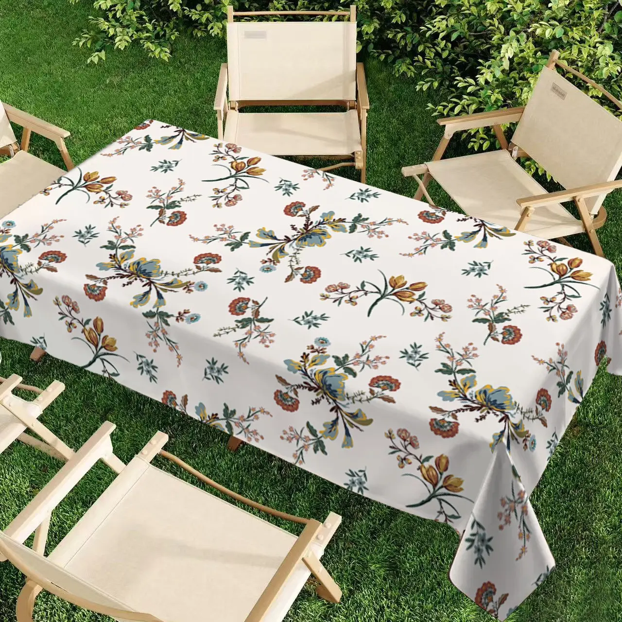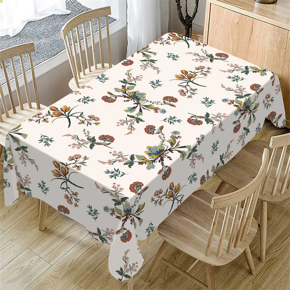 Rectangular Tablecloth Spring Summer Vintage Floral Pattern Washable, Indoor Outdoor Decor, Home Kitchen Living Room Dining Decoration, Floral Jacquard Fabric