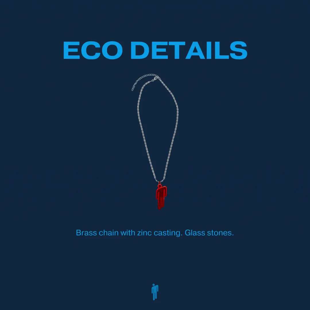 Necklace with red Blohsh pendant. Chain: 16“+3” extender Brass chain with zinc casting. Glass stones.