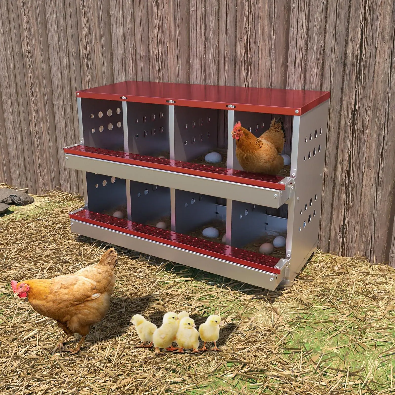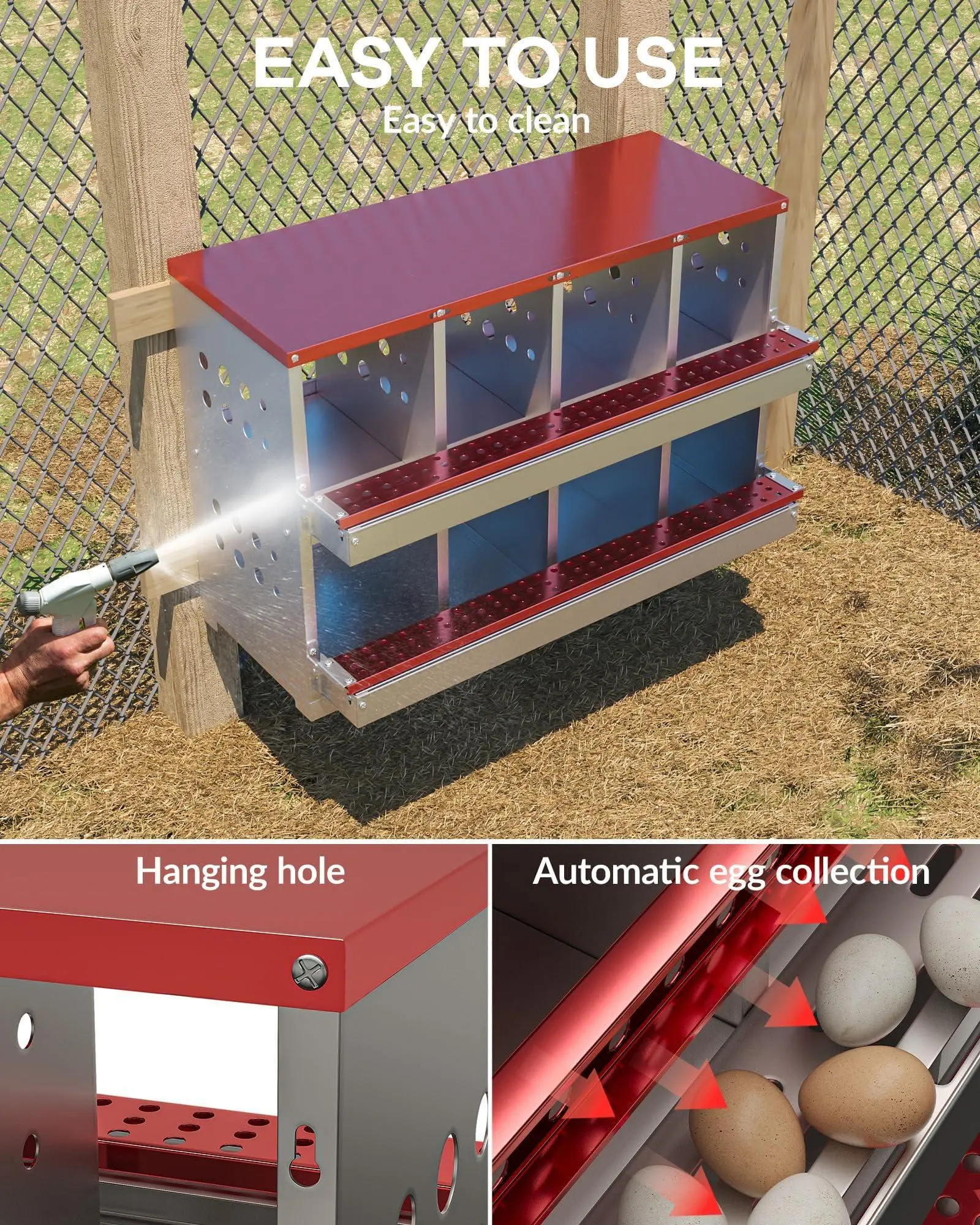 【Designed for Lasting】 Constructed from hot-dip galvanized steel with a waterproof, rustproof finish, this nesting box is engineered to withstand demanding barn environments and deliver years of dependable performance