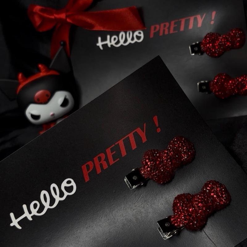 RED GLAM BOW Seamless Hair Clips Handmade Kawaii Bow Bedazzled for Stylish Looks