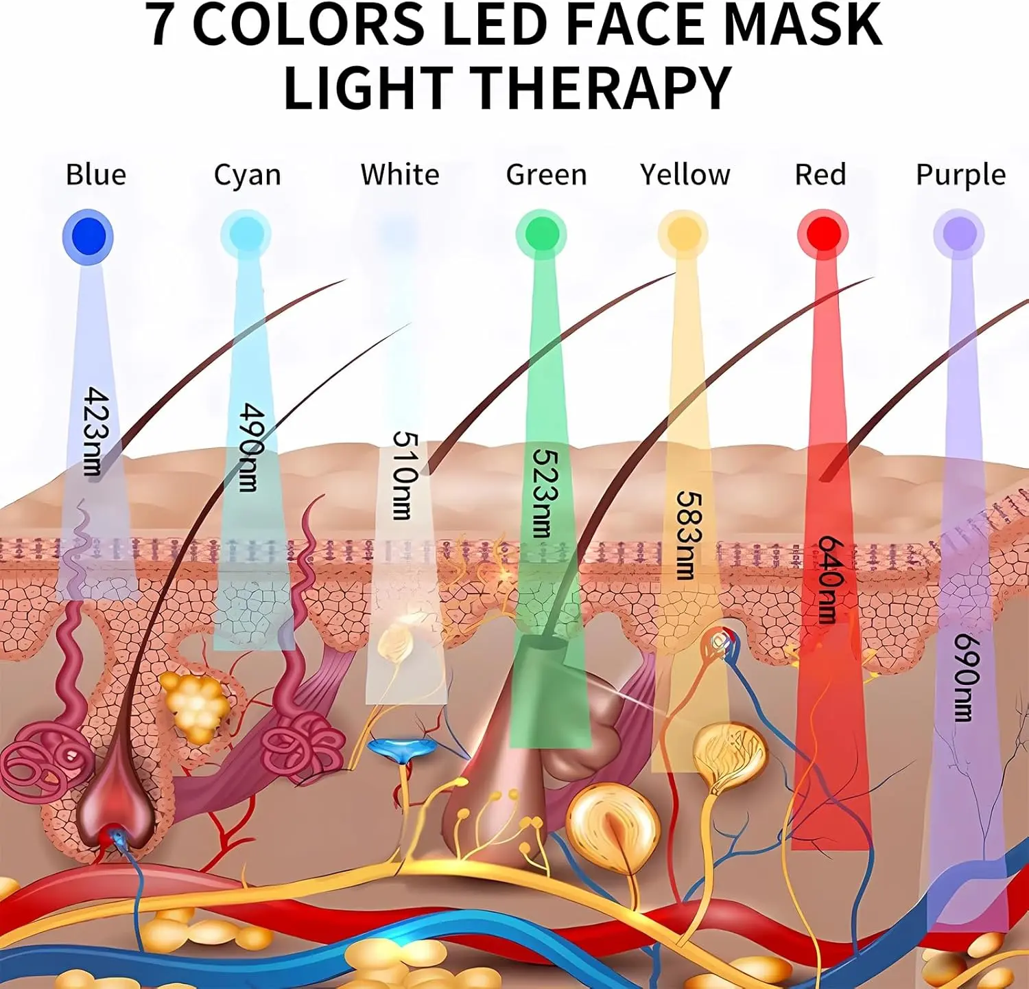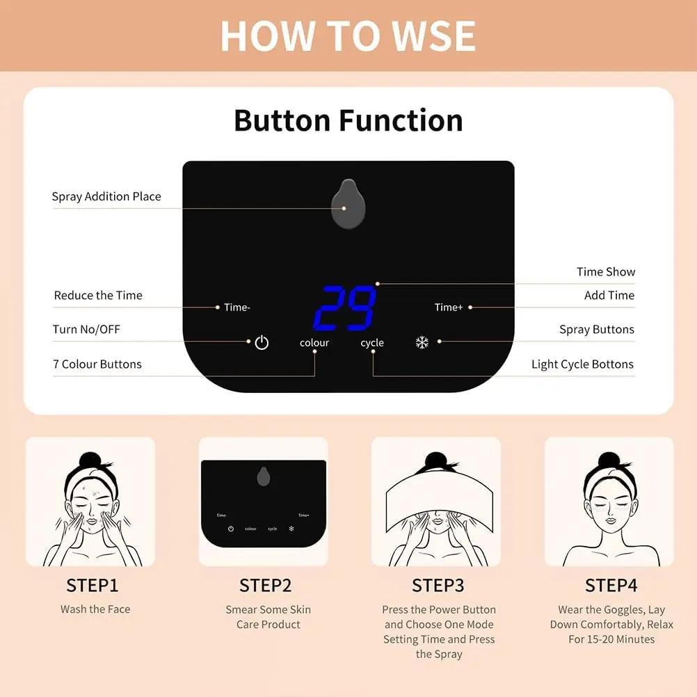 ✨ 7-color LED photoBeauty - LED photoBeauty offers 7 bright-colored spectra to address various skin issues. It boosts collagen production and improves skin elasticity. The face LED light features a spray design. Press the button to activate spray mode for enhanced effectiveness with the mask.