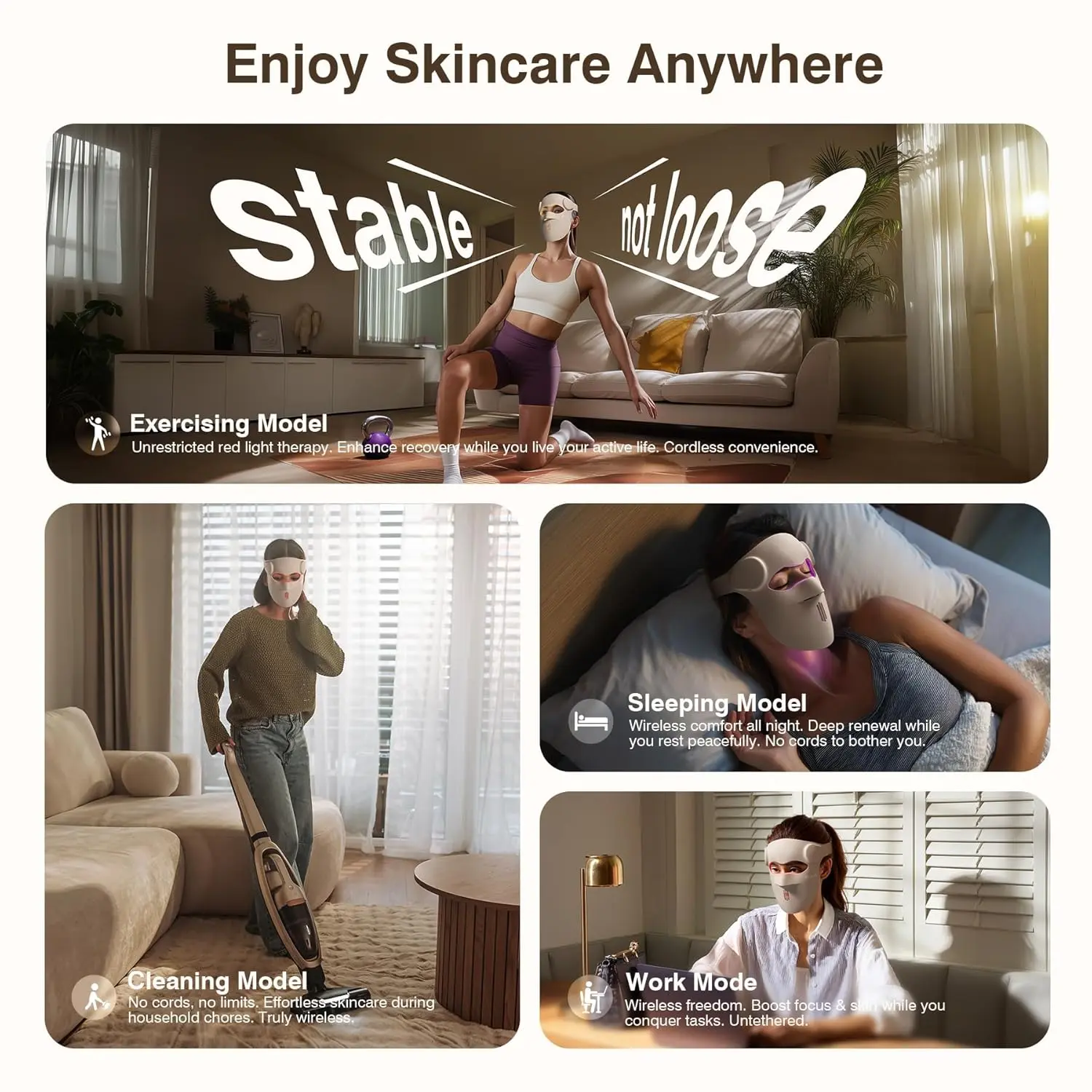 ·【2500mAh Long-Lasting & Travel-Ready】The portable red light therapy mask for face runs 120 mins/week on one charge—150% longer battery life than standard 2000mAh masks. Rechargeable via Type-C, it fits seamlessly into work or travel schedules. Enjoy hands-free light therapy for face during reading, yoga, exercise, or relaxation—no need for salon visits. This at-home skincare solution saves both time and money while delivering professional-grade results.