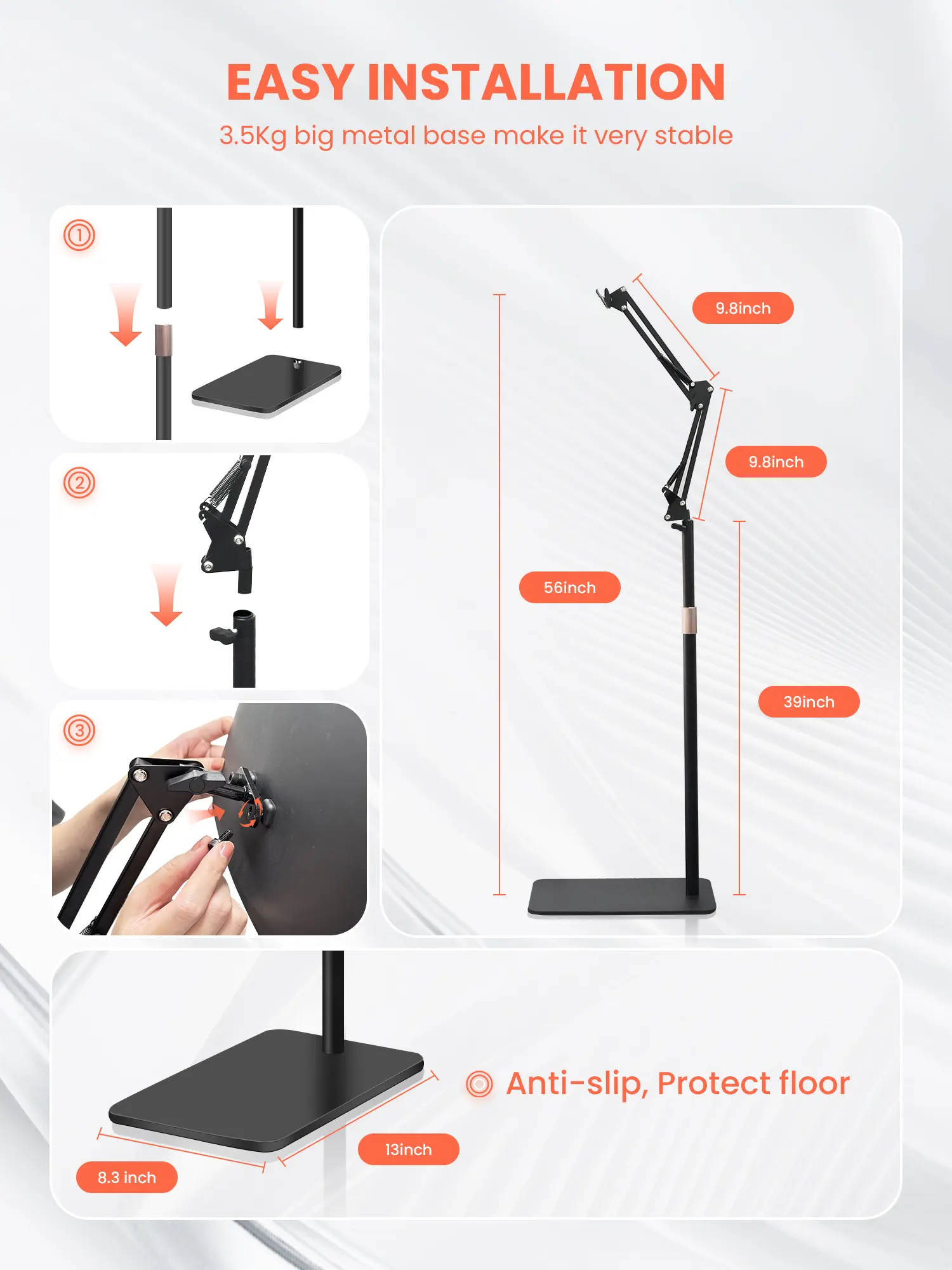 • Adjustable arm with flexible angle