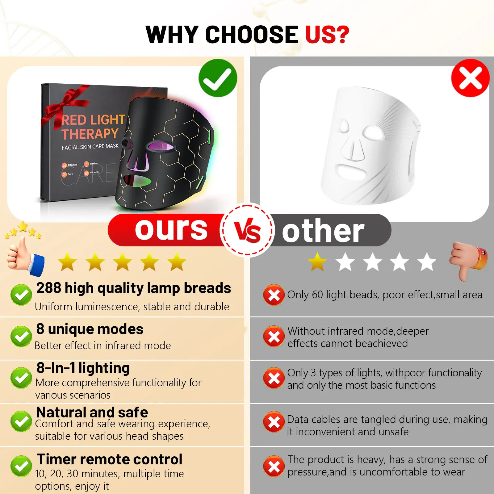 🌟 Rechargeable Remote & Customizable Sessions: Control settings easily with the remote. Adjust colors, timer, and brightness without interruption. The 2600mAh battery supports long sessions. Enjoy light therapy anytime, anywhere. Skip expensive spa visits!