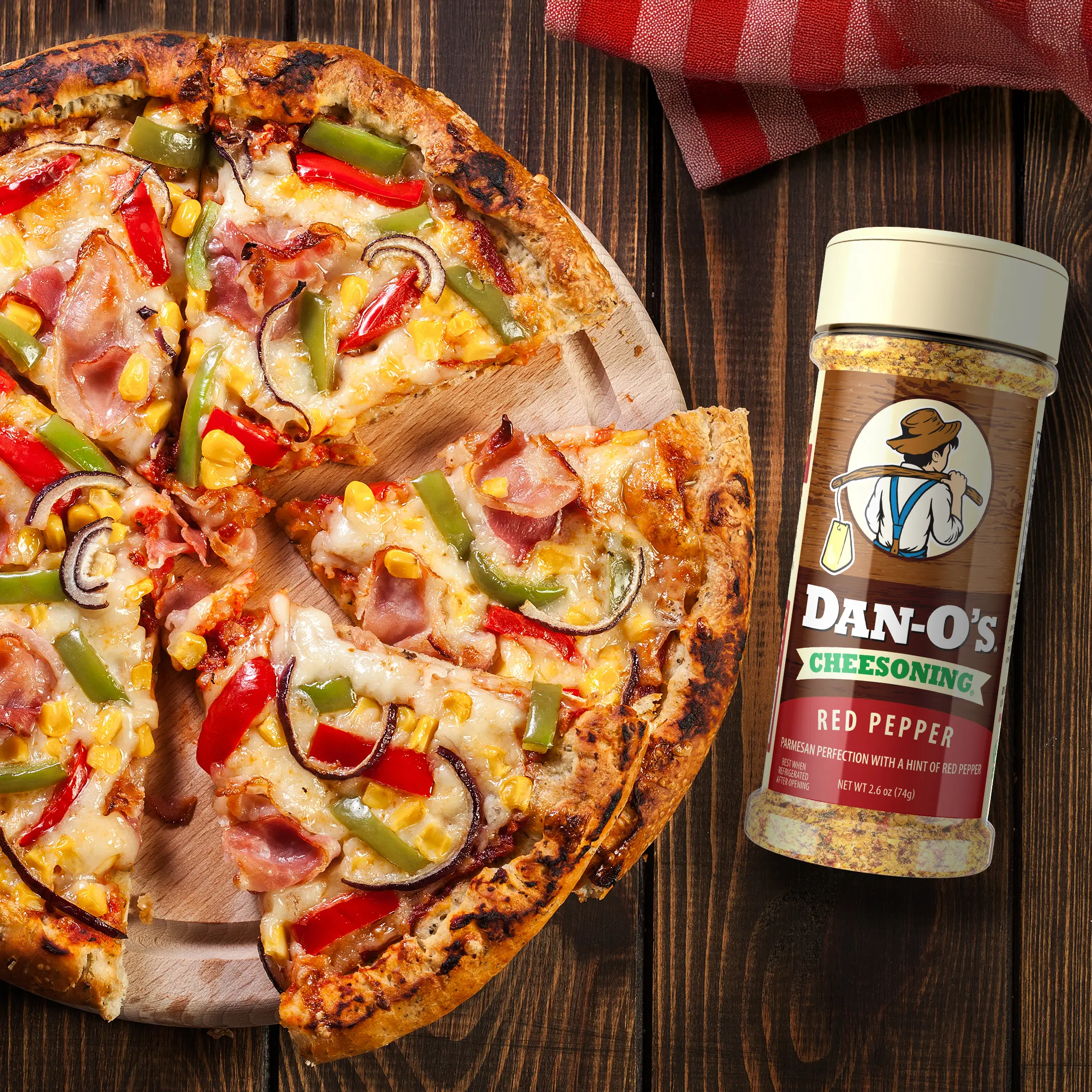 ·Pizza Seasoning: Dan-O’s Red Pepper Cheesoning was practically born to be a pizza seasoning. It’s got everything your slice dreams of—savory Parmesan cheese for that cheesy goodness, a pinch of red pepper flakes for just the right kick, and a blend of Italian herbs that make every bite taste like a gourmet pie.